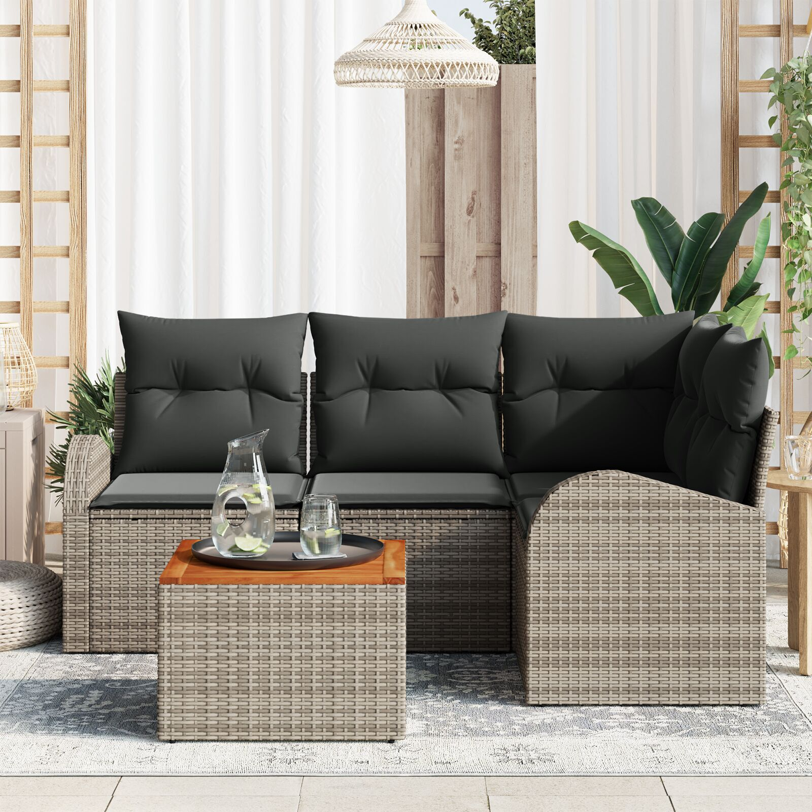 Set canapea de grădină 5 piese cu perne gri ratan poli acacia GartenMobel Dekor