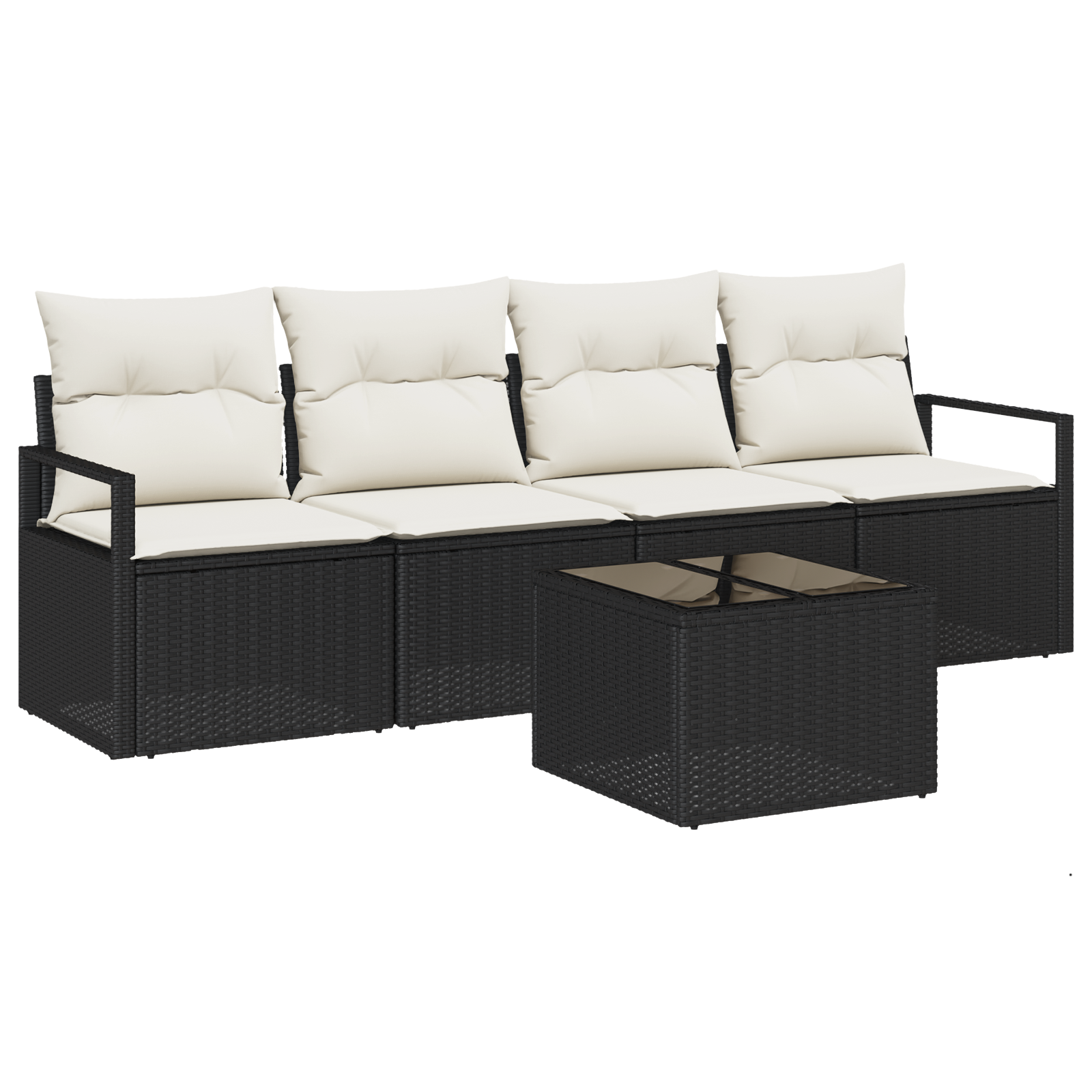 Set canapea de grădină 5 piese cu perne Negru Ratan Sintetic, Canapea de grădină 2 locuri cu perne Negru Ratan Sintetic GartenMobel Dekor