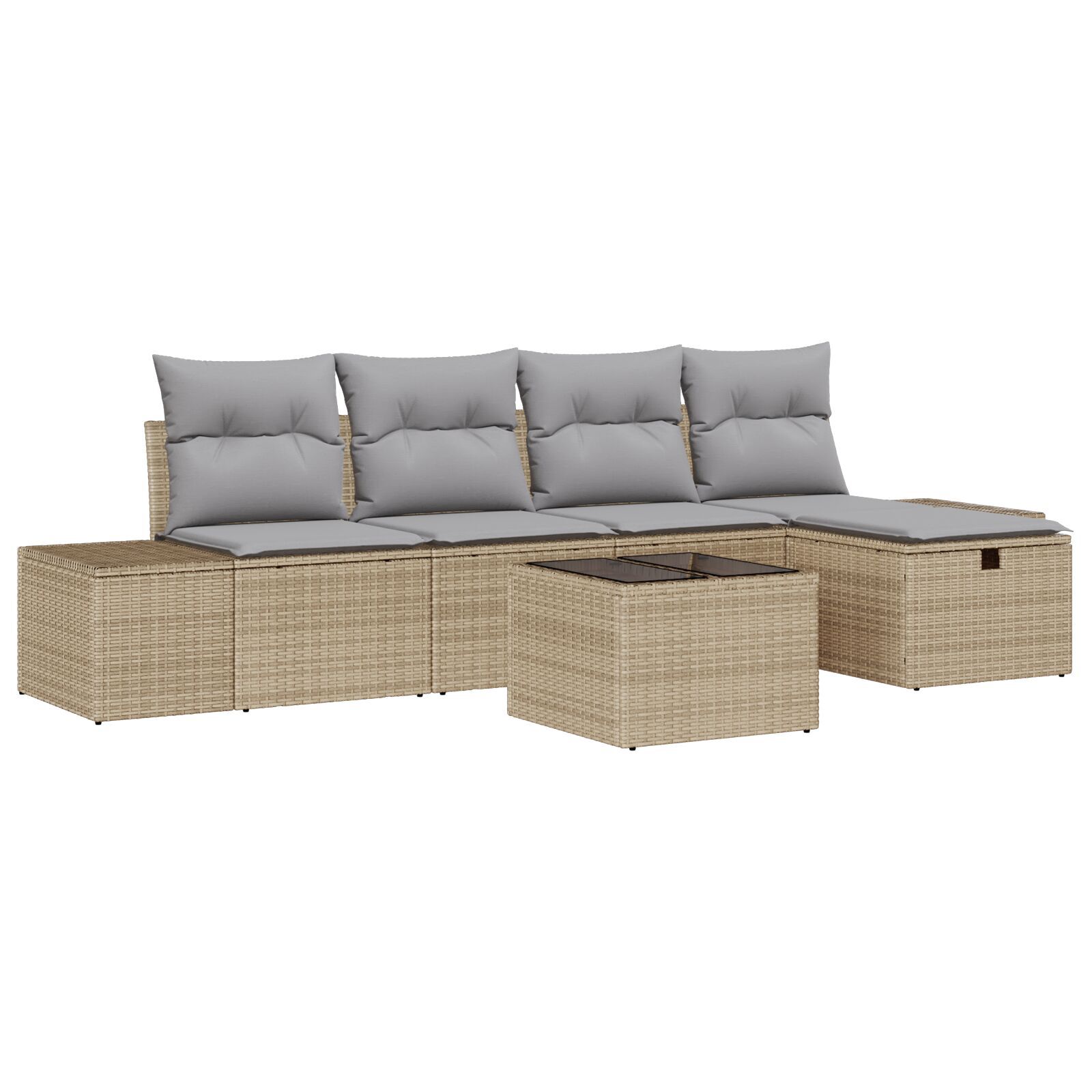 Îmbunătățește-ți spațiul exterior cu acest set de canape de grădină din 6 piese, făcut din poliratan de calitate, care e elegant și durabil. E o combinație super între stil și funcționalitate, perfectă pentru a face terasa, grădina sau balconul tău să arate fain.