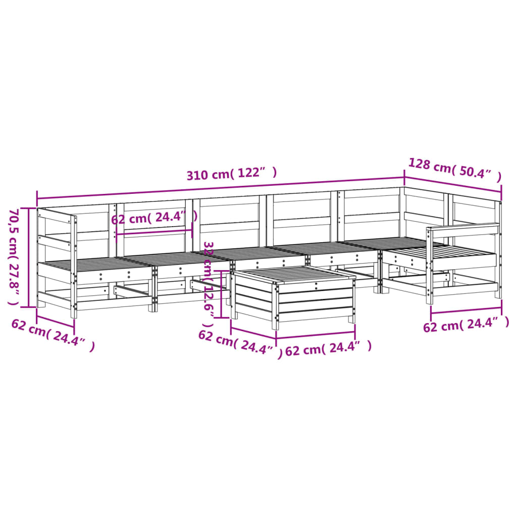 Set canapea de grădină, 7 piese, lemn masiv de pin GartenMobel Dekor