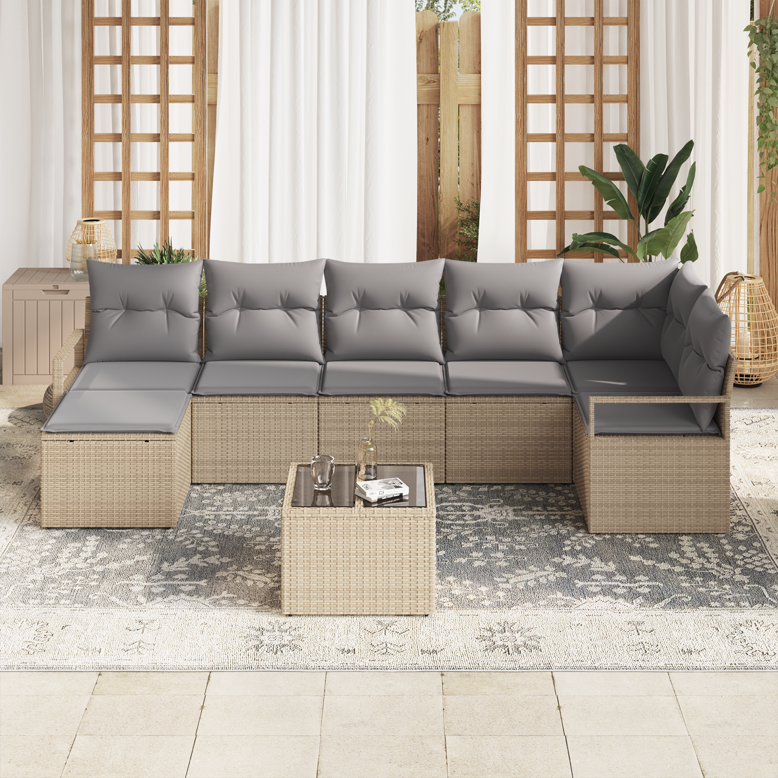 Set canapea de grădină 8 piese cu perne Black Poly Rattan, Set canapea de grădină cu 2 locuri cu perne Bej Poly Rattan GartenMobel Dekor