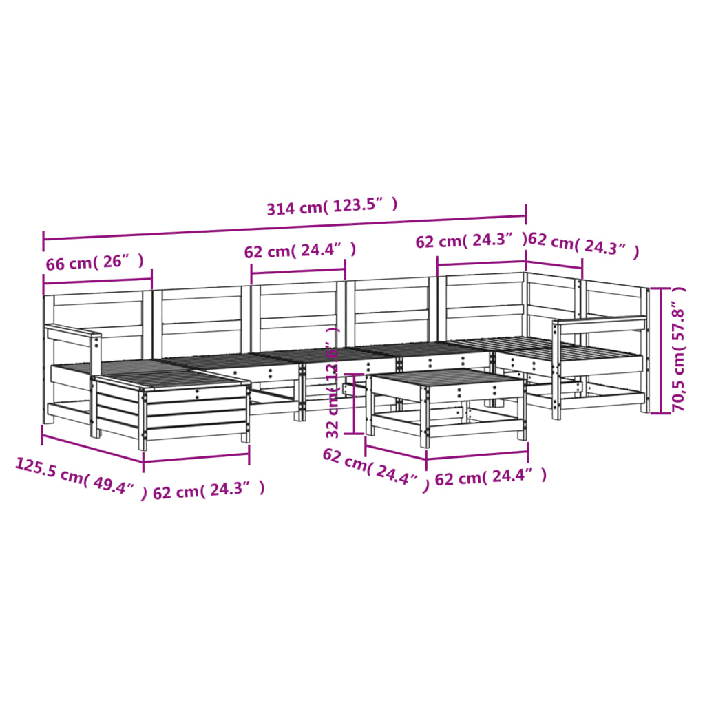 Set canapea de grădină, 8 piese, lemn masiv de pin GartenMobel Dekor
