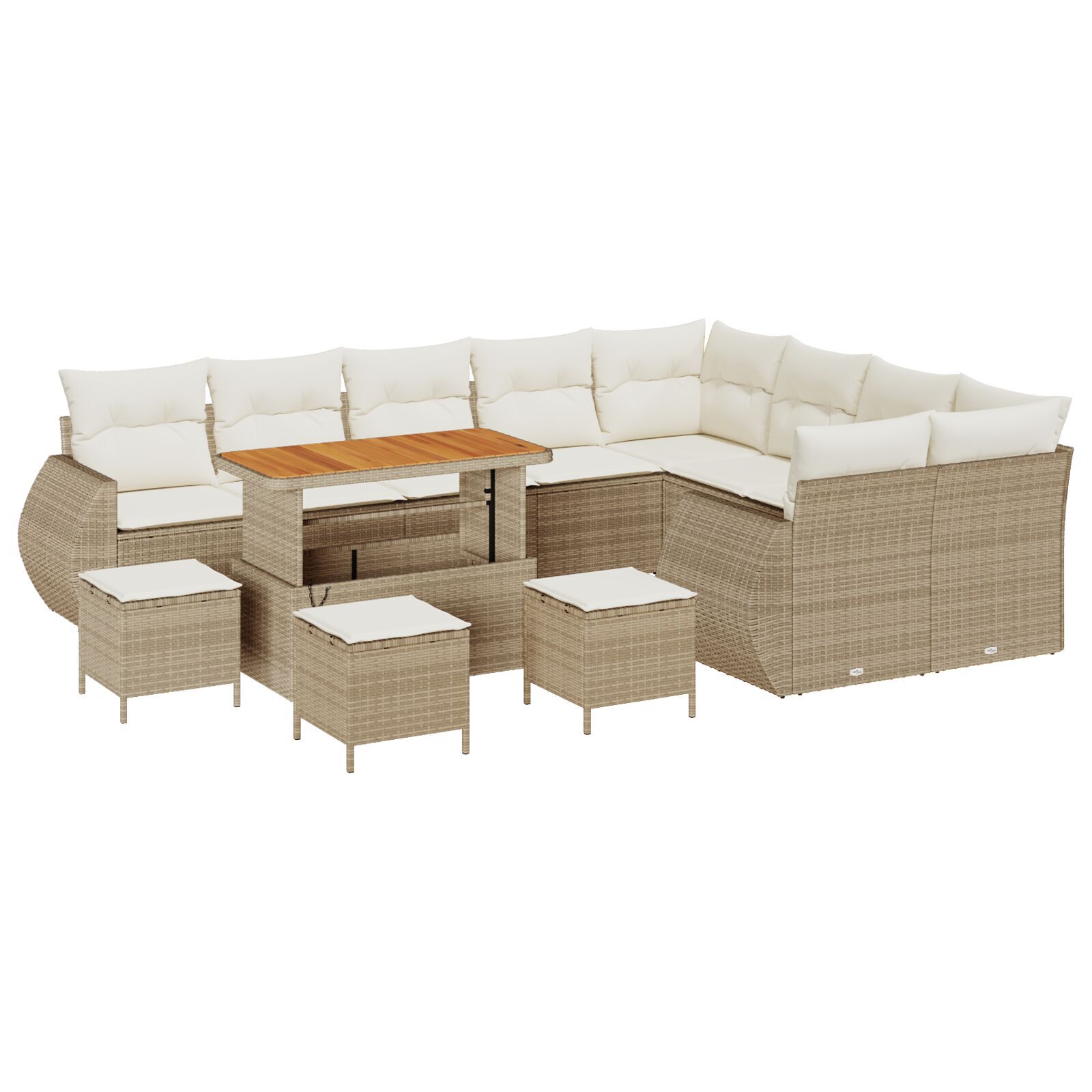 Set canapea de grădină cu 13 piese și perne Bej din ratan sintetic Acacia, Set dining grădină cu 4 piese și perne Bej din ratan sintetic Acacia GartenMobel Dekor