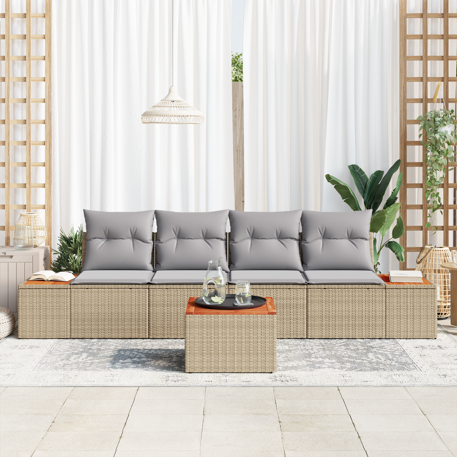 Set canapea de grădină cu 5 piese și perne Bej Poliratan Acacia, Canapea de grădină vintXL cu 2 locuri cu stocare & perne Bej Poliratan GartenMobel Dekor
