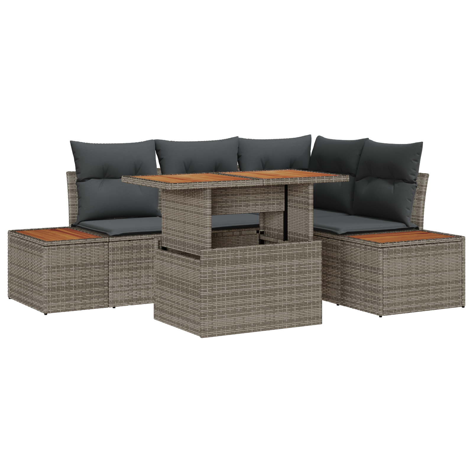 Set Canapea de Grădină cu 5 Piese și Perne Gri din Ratan Polimerizat GartenMobel Dekor