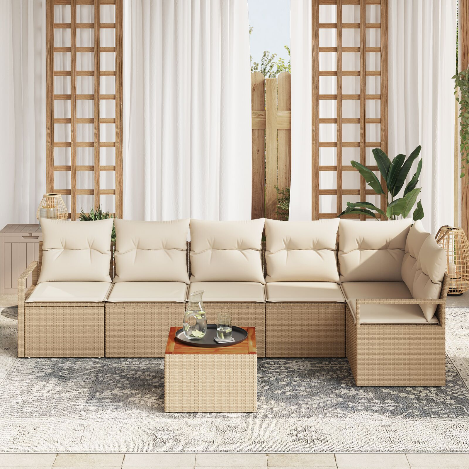 Set canapea de grădină cu 7 piese și perne Bej Poliratán Acacia, Canapea de grădină cu 2 locuri și perne Bej Poliratán GartenMobel Dekor