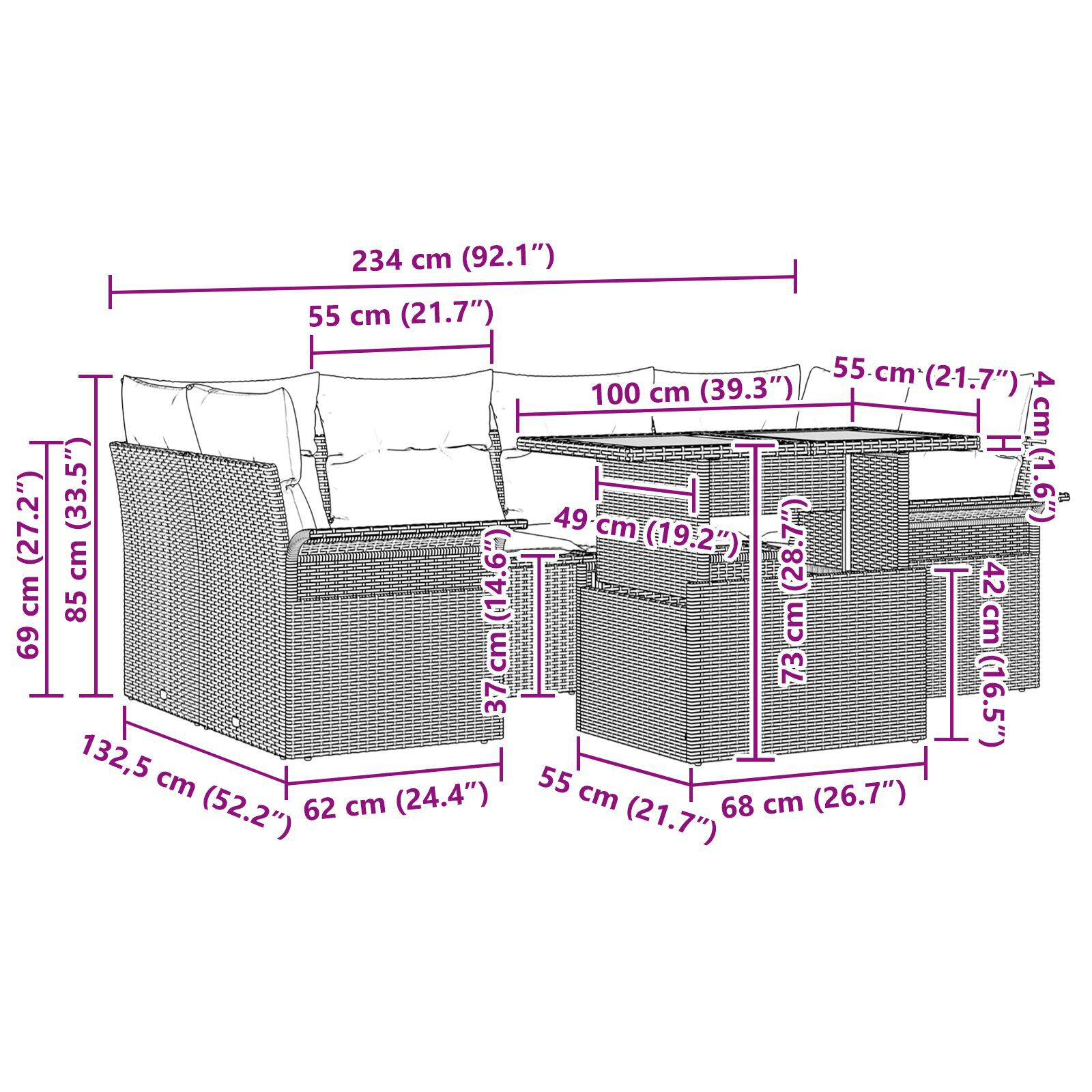 Set canapea de grădină cu 7 piese și perne, Ratan poli, Acacia GartenMobel Dekor