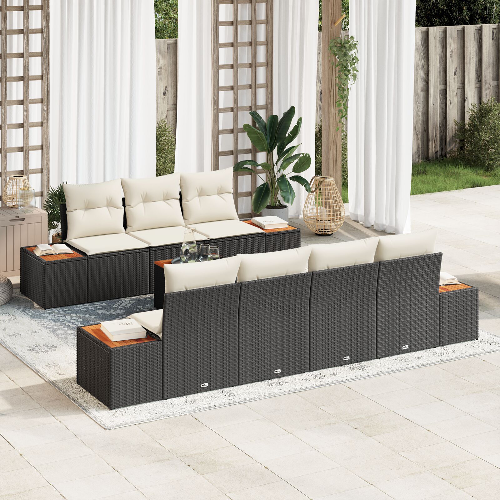 Set canapea de grădină cu 8 piese cu perne Negru Poliratan Acacia GartenMobel Dekor