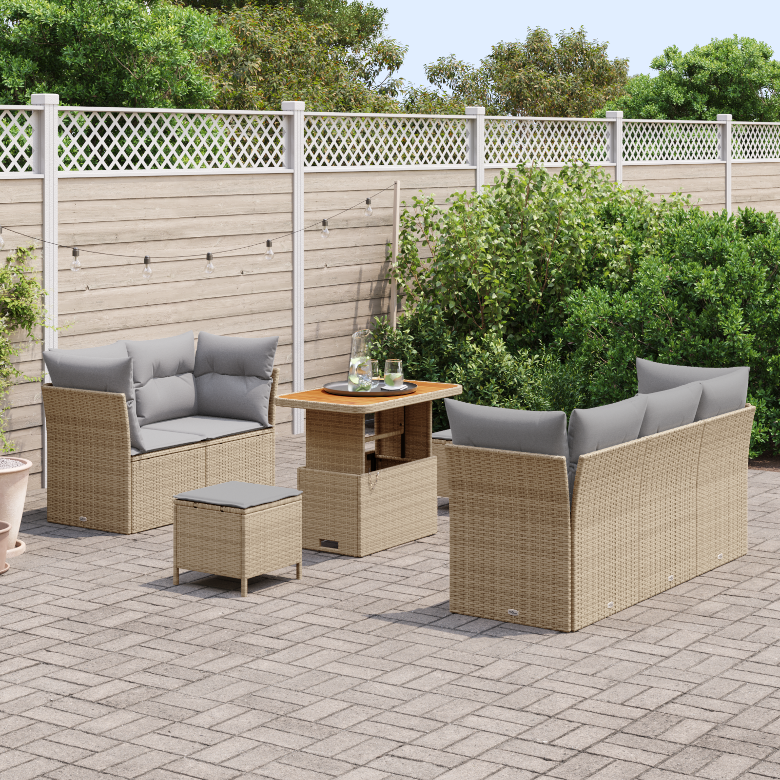Setul ăsta de canapele de grădină cu 8 piese și perne e perfect pentru stil și relaxare în aer liber. Îți face patio, balconul sau grădina să strălucească cu vibe-ul său elegant, combinând ratanul bej cu pernele moi gri deschis - ideal pentru mese, relaxare sau pur și simplu pentru a te bucura de aerul proaspăt.