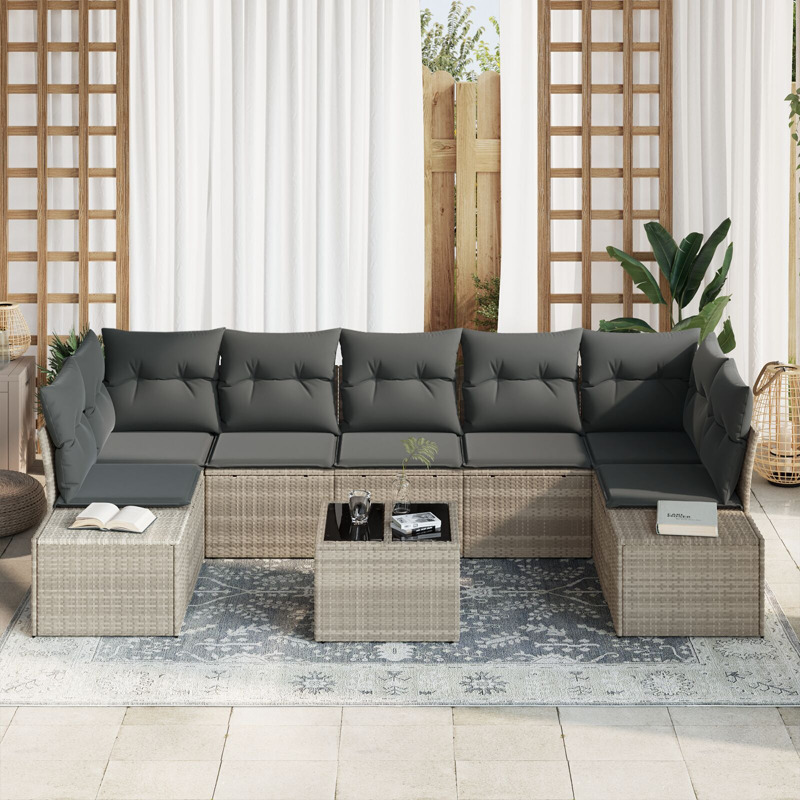 - Construcție robustă: Fabricat din poliratan și oțel, setul e gândit să reziste vremii, asigurând utilizare fiabilă de-a lungul anotimpurilor.