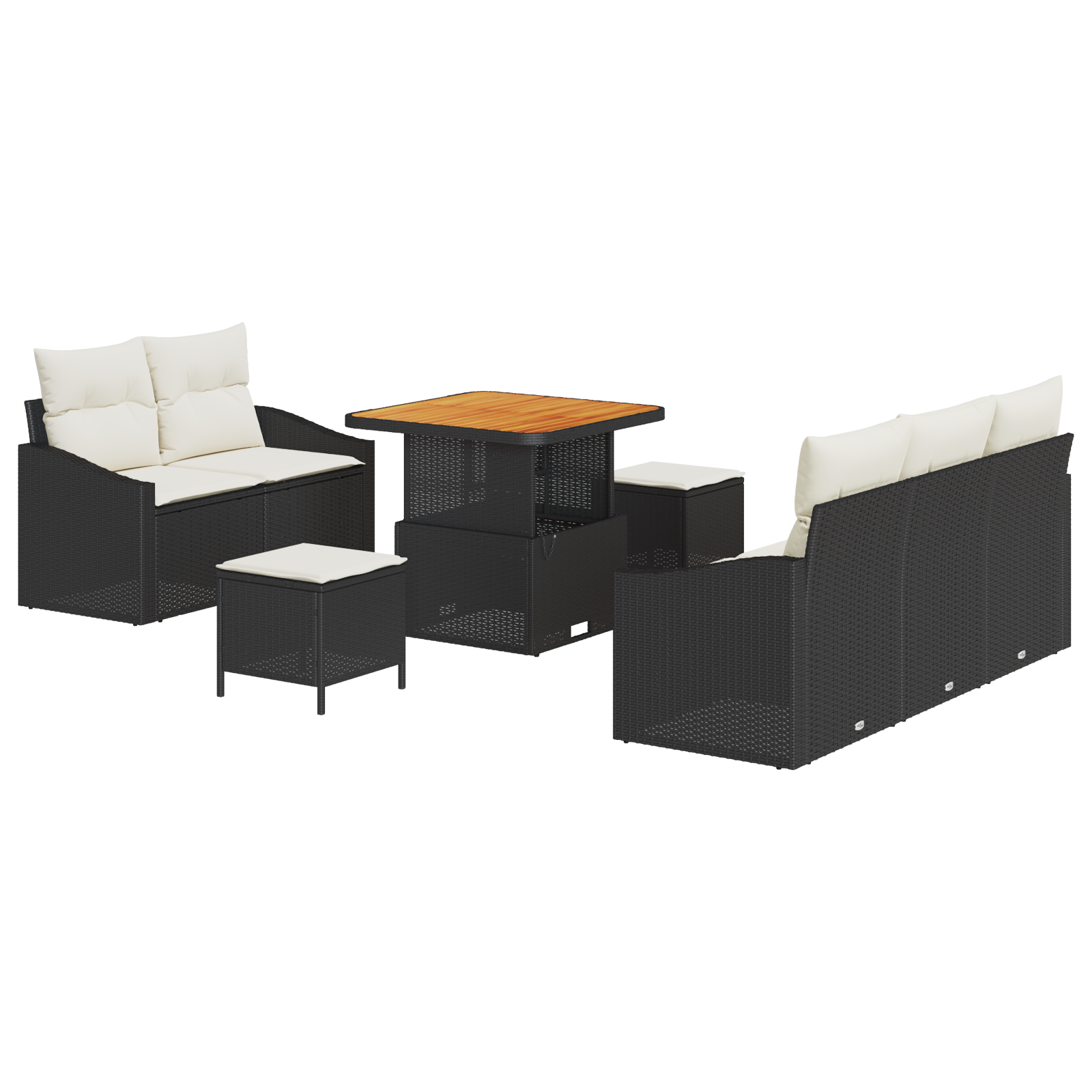 Set Canapea de Grădină cu 8 Piese și Perne Poliratan Negru Acacia GartenMobel Dekor