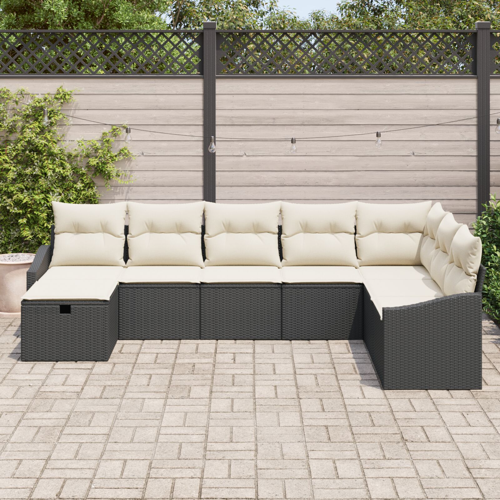 Set canapea de grădină cu 8 piese și perne - Ratan poli negru GartenMobel Dekor
