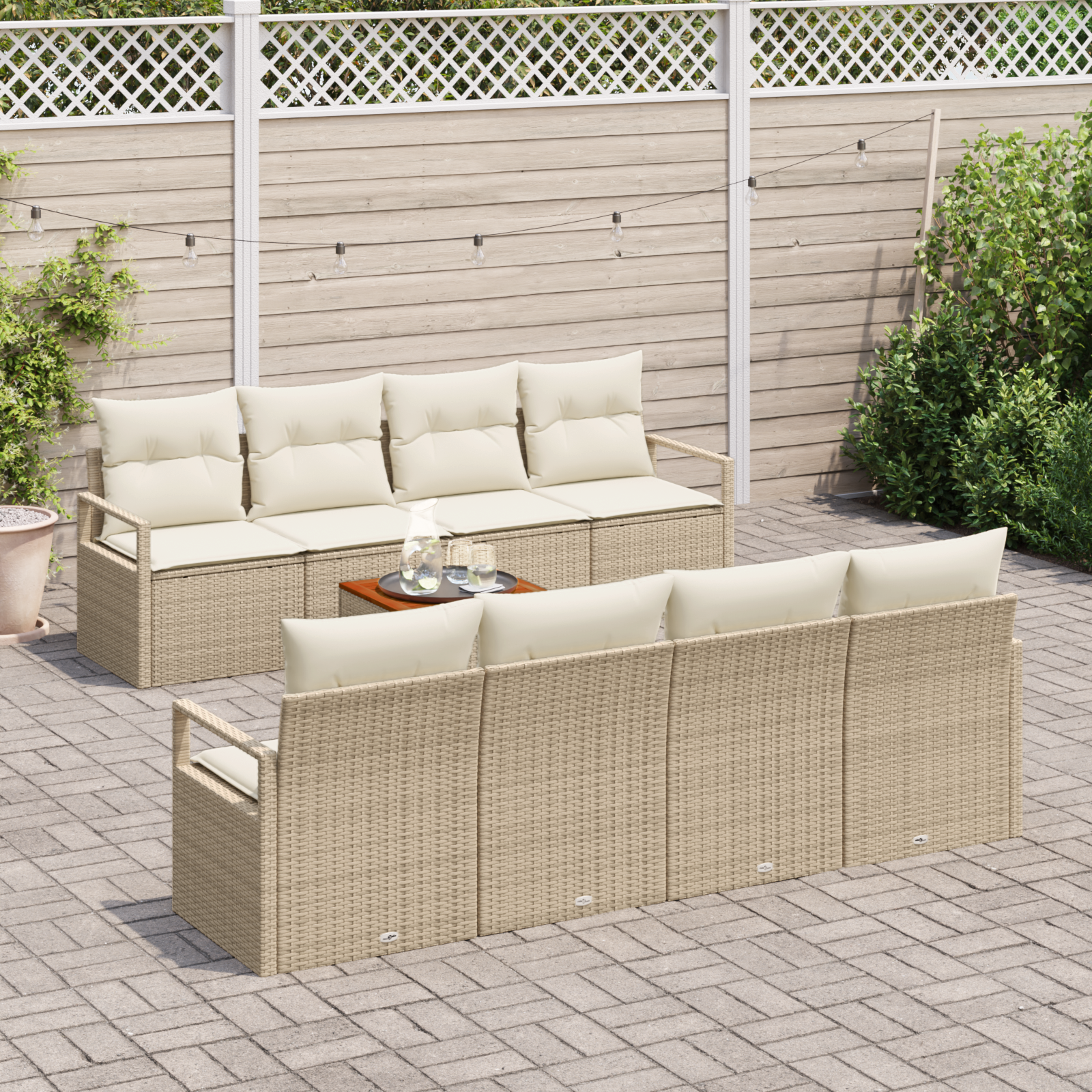 Set Canapea de Grădină cu 9 Piese și Perne Bej din Ratan Poliester GartenMobel Dekor
