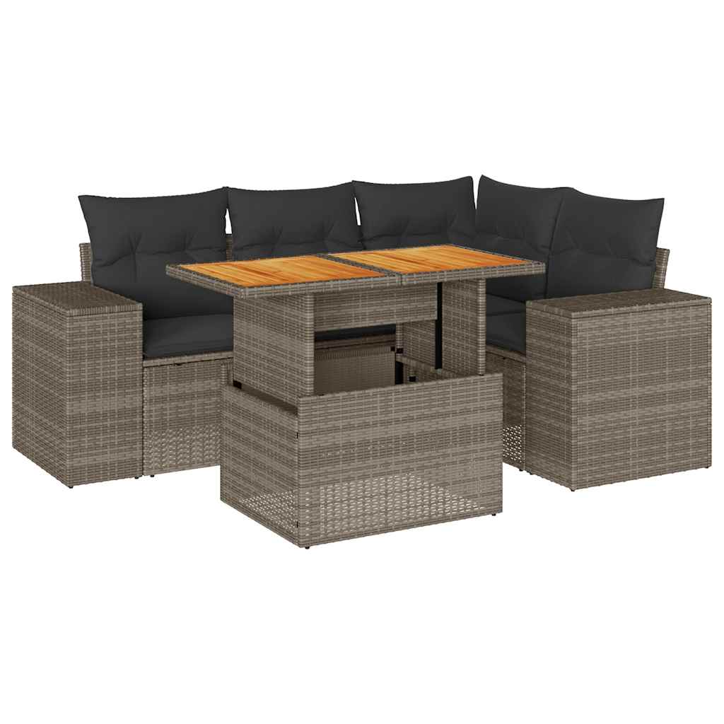 Set canapea de grădină cu perne, 5 piese, gri, poliratan GartenMobel Dekor