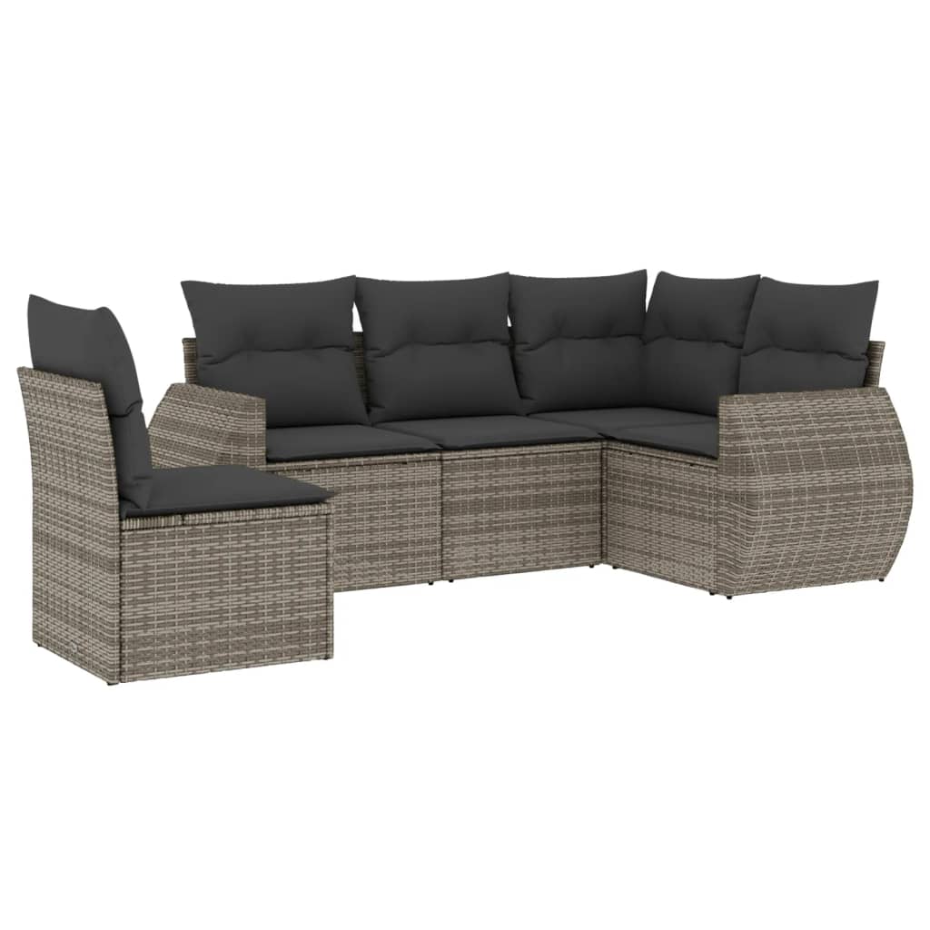 Set canapea de grădină cu perne, 5 piese, gri, poliratan GartenMobel Dekor