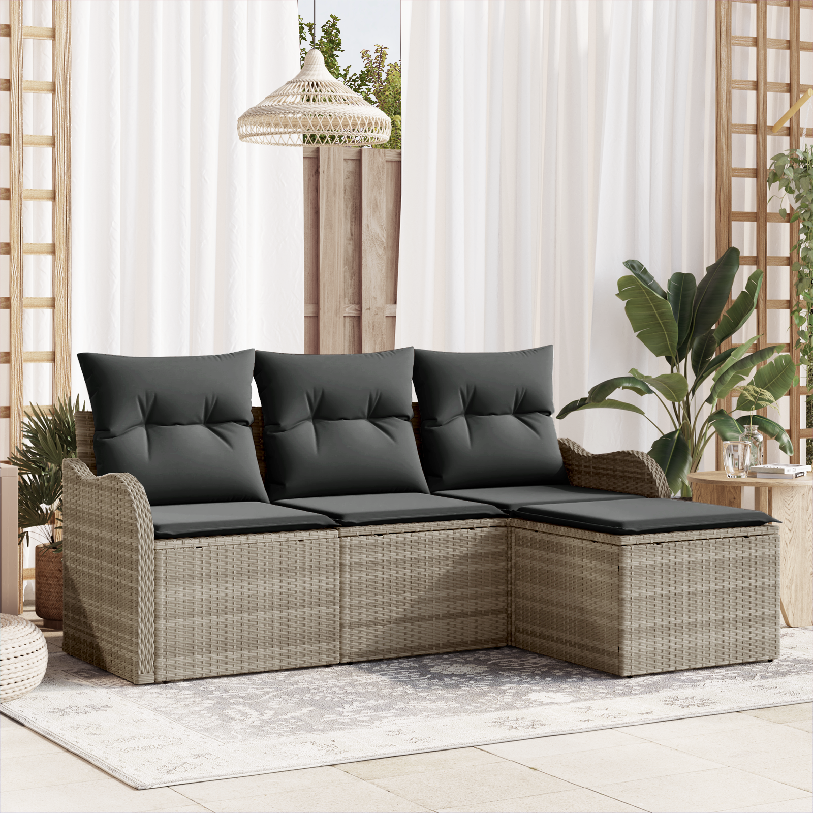 Set canapea de grădină de 4 piese cu perne Gri deschis din Ratan Poliester GartenMobel Dekor