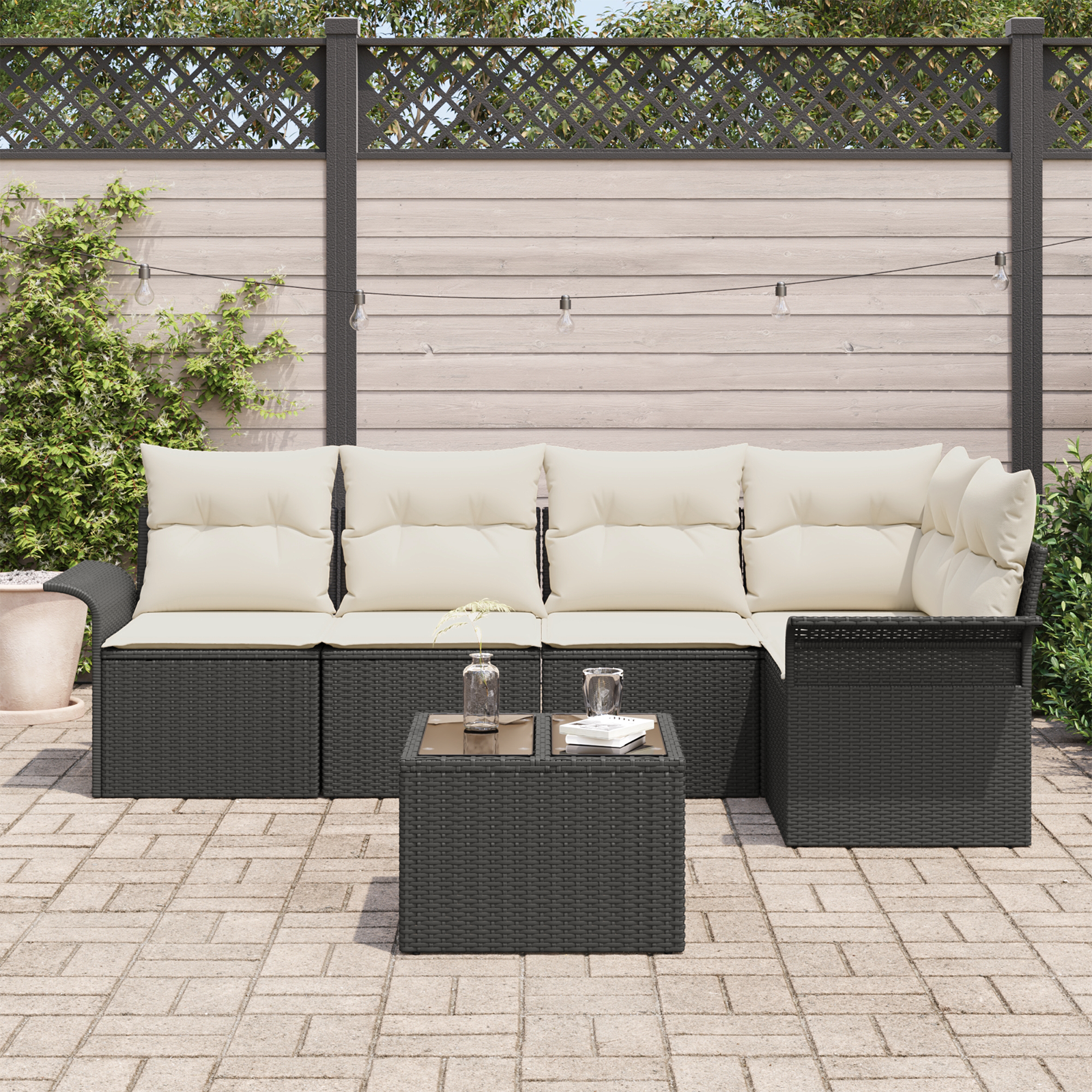 Îmbogățește-ți spațiul de afară cu acest fabulos set de canapele de grădină de 5 piese, care pun accent pe confort și stil. Cu culorile trendy negru și crem și textura împletită super, e exact ce ai nevoie pentru distracție sau relaxare.