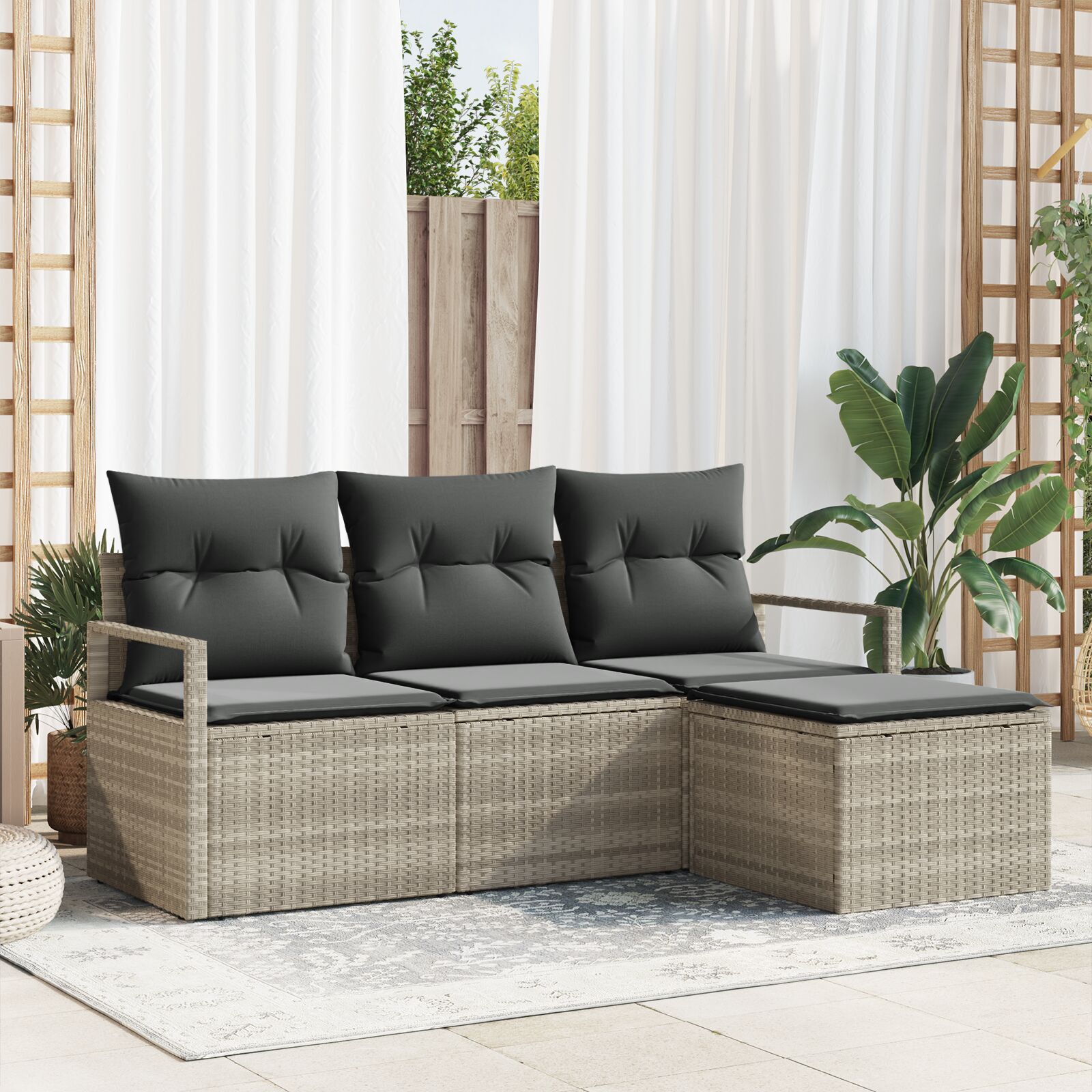 Set canapea de grădină în 4 piese cu perne Gri deschis Poliratan, Canapea de grădină cu 2 locuri cu depozitare și perne Gri Poliratan GartenMobel Dekor