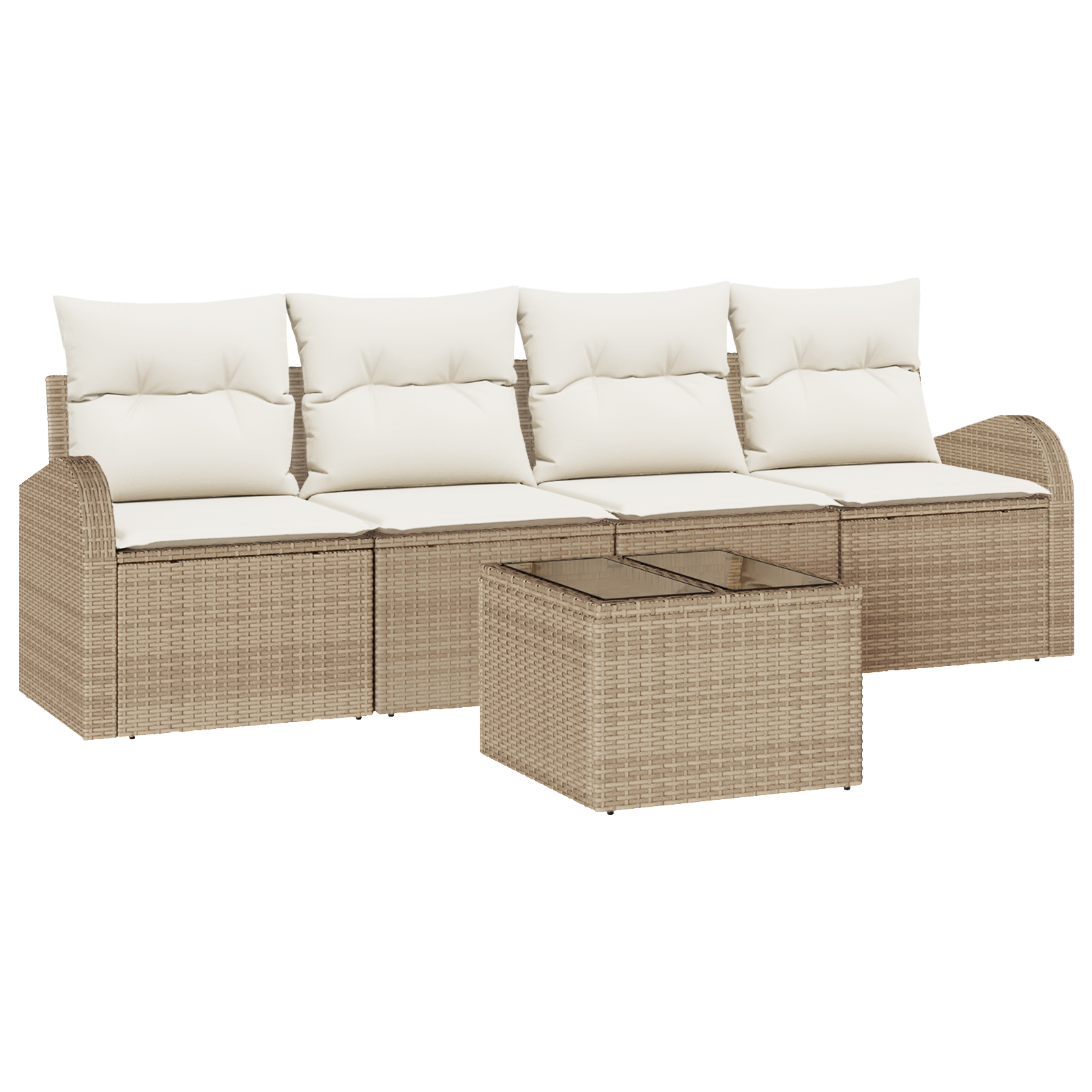 Setul ăsta de canapele de grădină de 5 piese din ratan poli bej îți face spațiul de afară elegant și primitor. Cu un aspect modern și un design inteligent, e perfect pentru balcon, patio sau grădină, unde te poți relaxa cu stil.