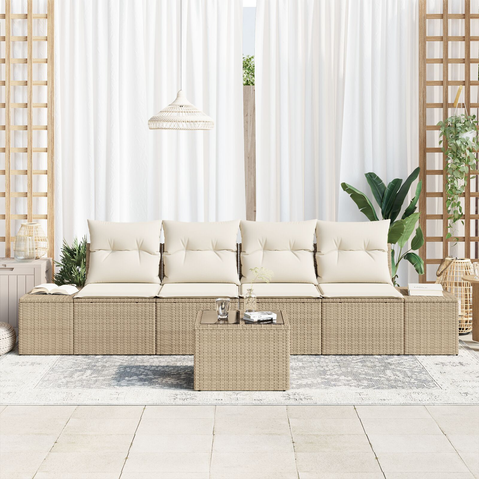 Set canapea grădină , 5 piese cu perne Bej Ratan Poliester GartenMobel Dekor