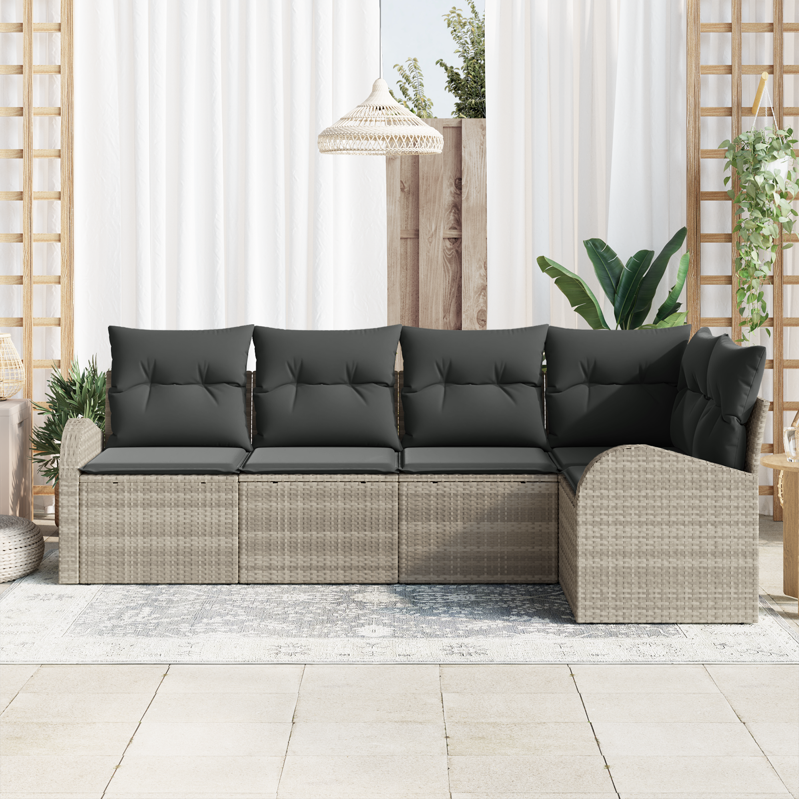 Set canapea grădină 5 piese cu perne gri deschis din poliratan GartenMobel Dekor