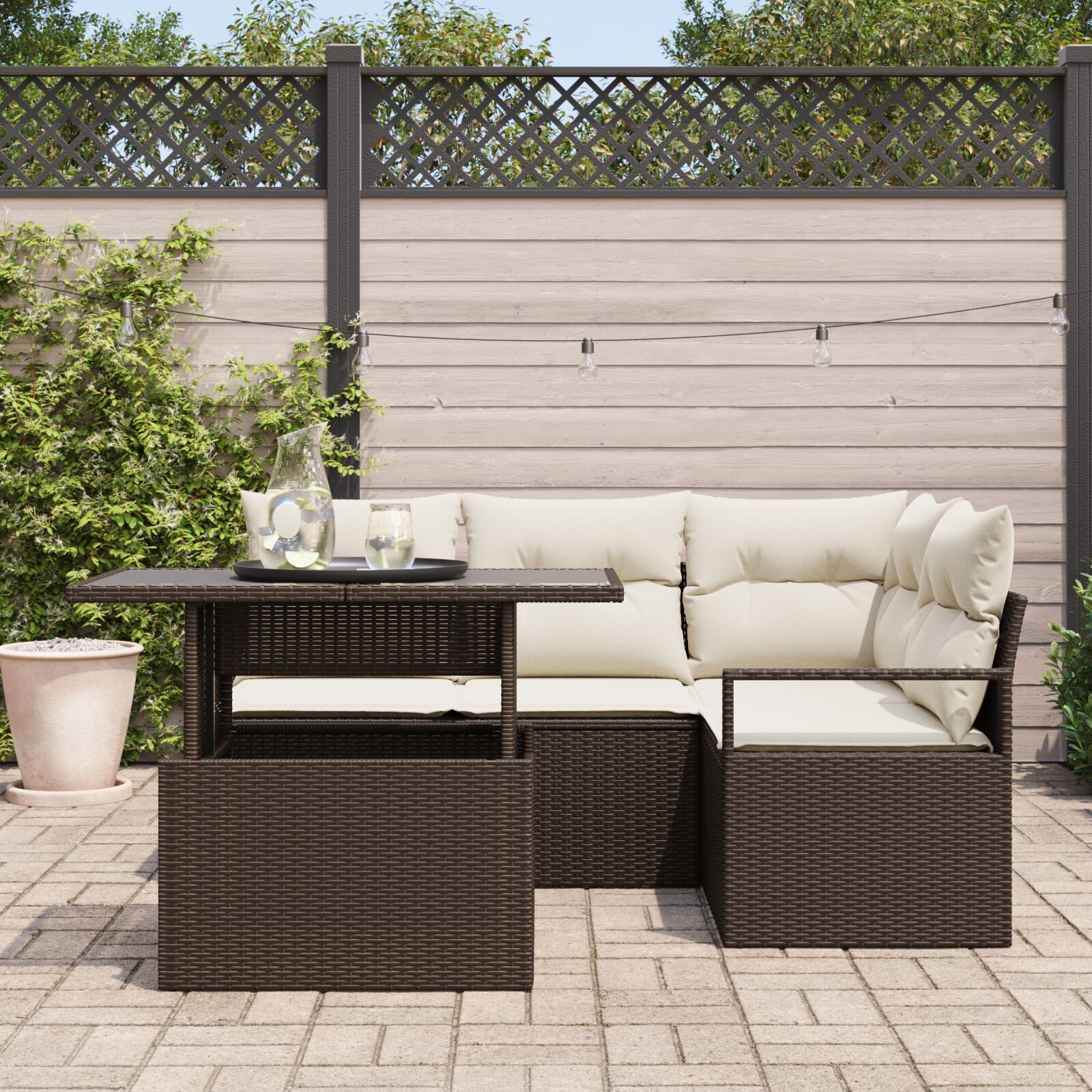 Set canapea grădină 5 piese cu perne Maro din ratan polimeric, Canapea grădină 2 locuri cu stocare și perne Maro din ratan polimeric GartenMobel Dekor