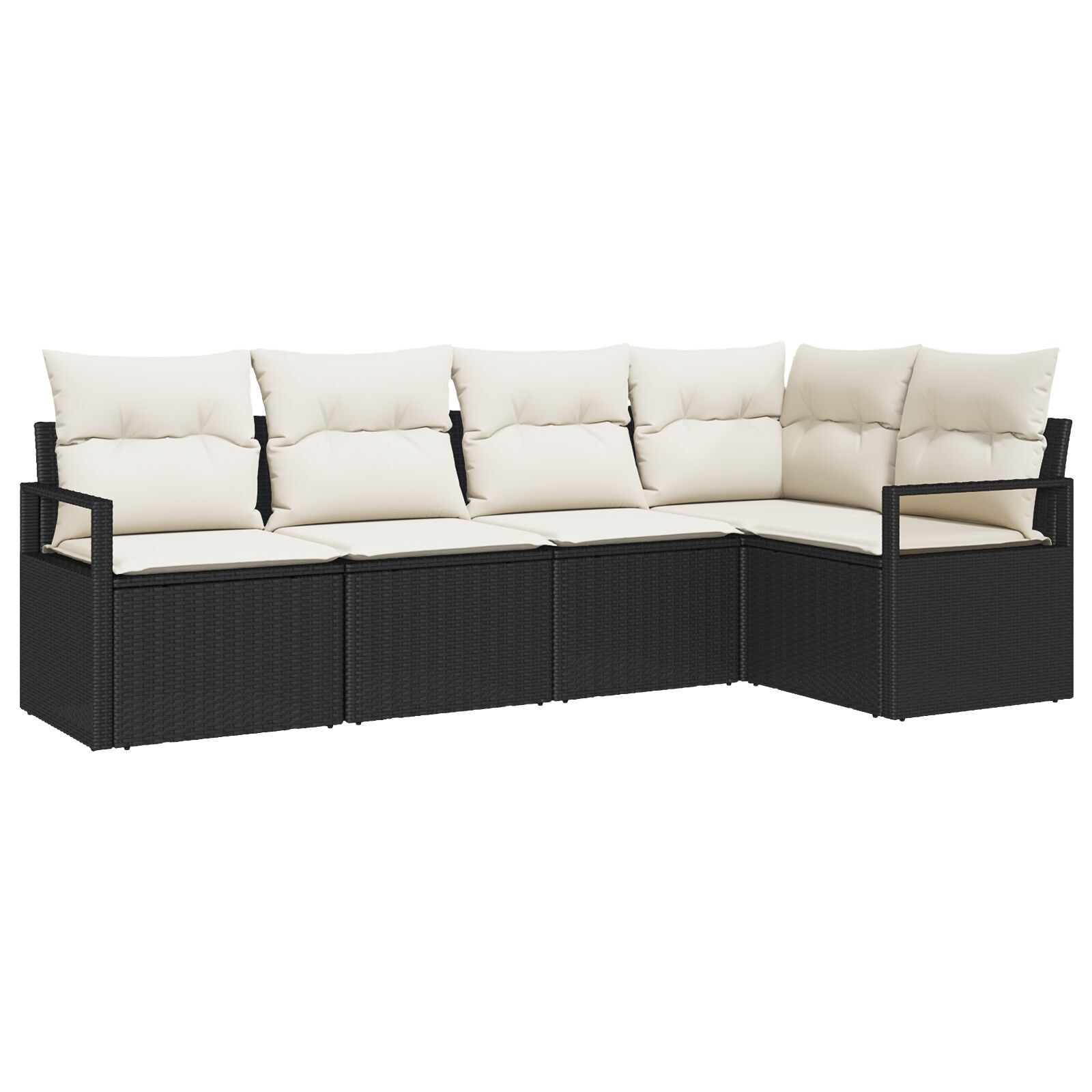 Setul ăsta de canapea exterior combină stilul modern cu funcționalitatea, fiind ideal pentru orice grădină sau balcon. Schema de culori alb-negru arată elegant și oferă locuri flexibile pentru până la cinci persoane, așa că toți pot să se relaxeze.