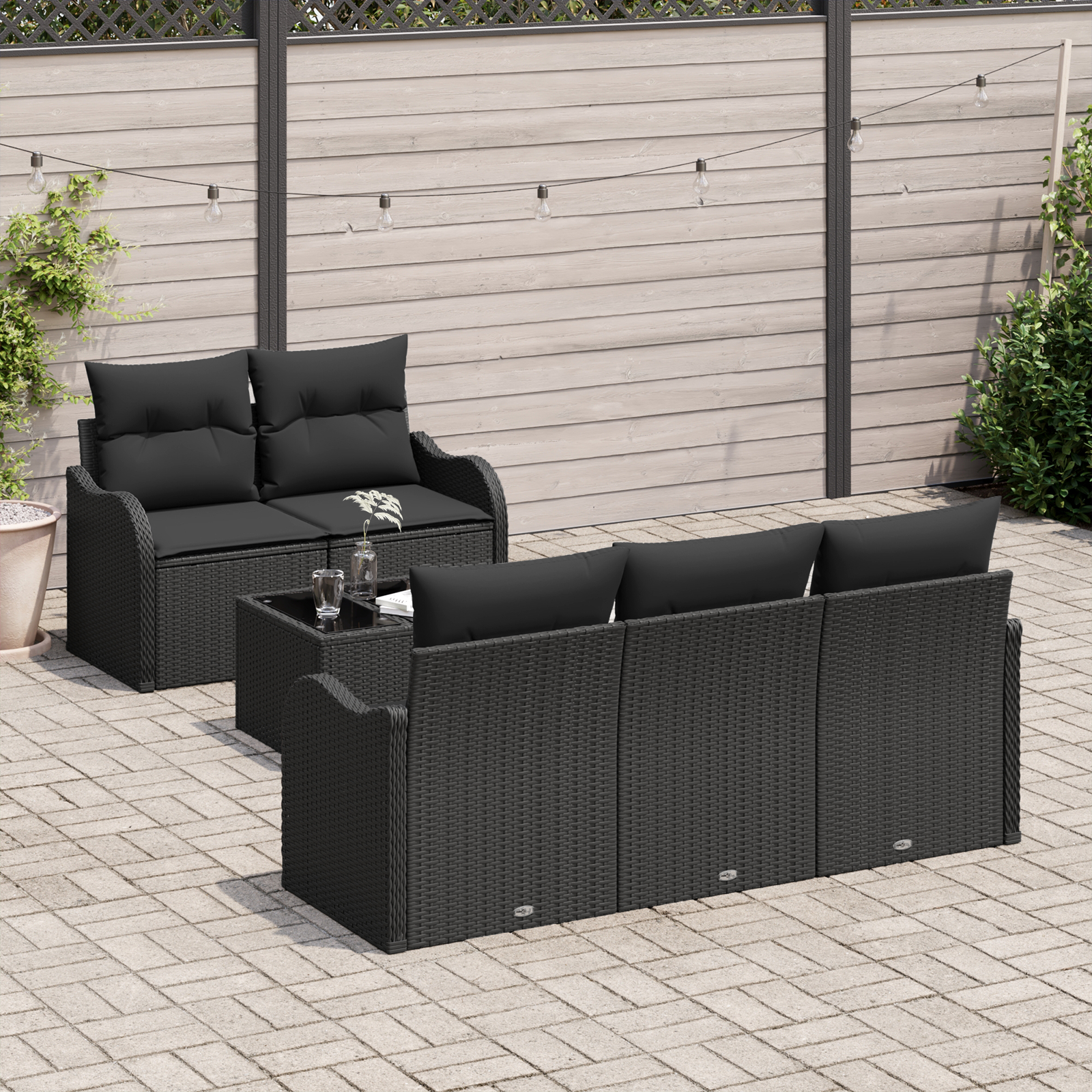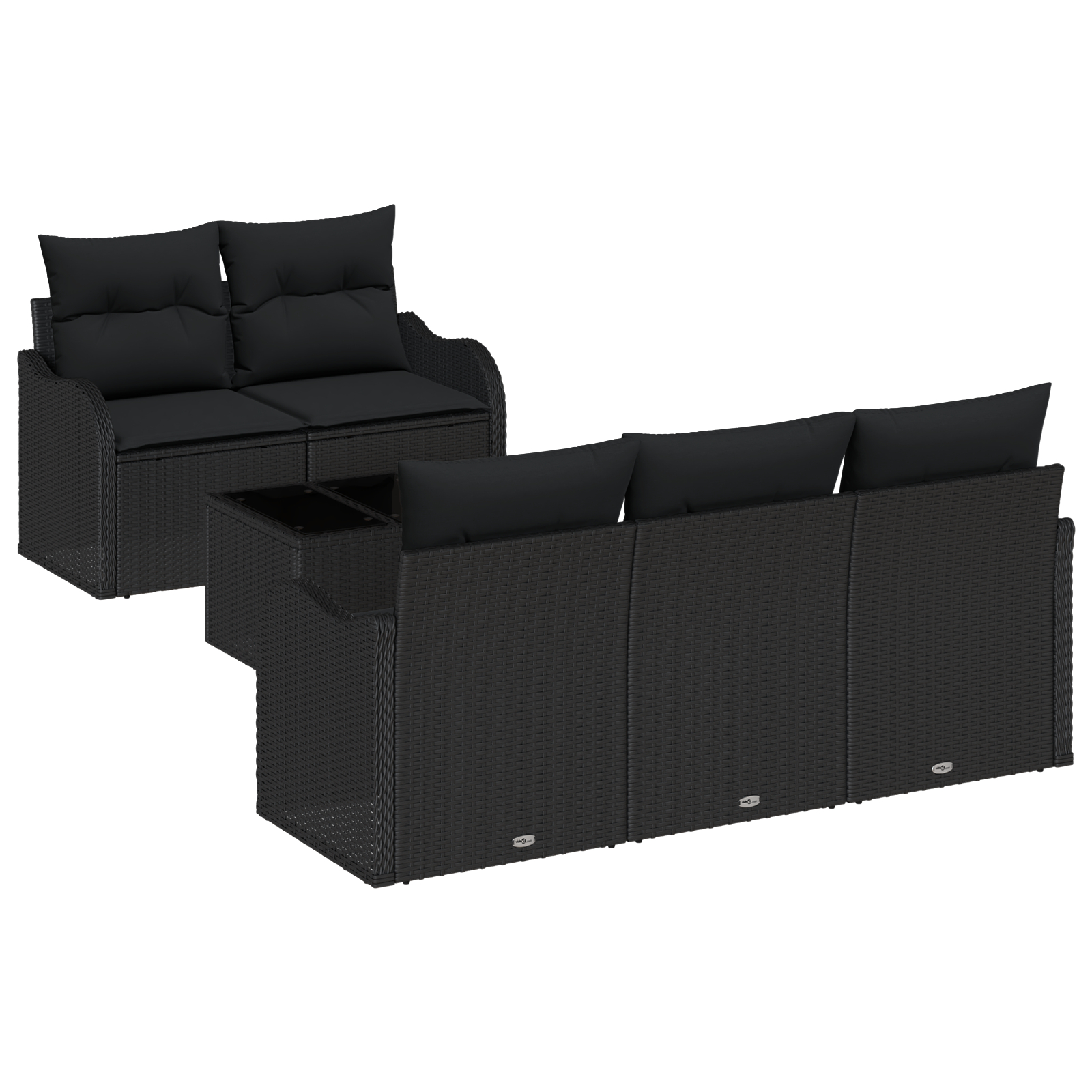 Set Canapea Grădină 6 Piese cu Pernă Negru Ratan Poliester, Canapea Grădină 2 Locuri cu Pernă Negru Ratan Poliester GartenMobel Dekor