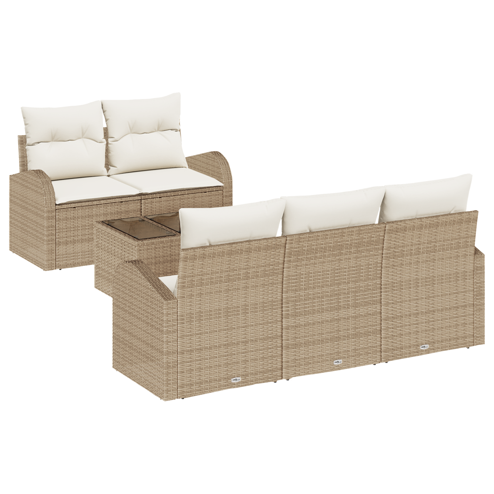 Set canapea grădină 6 piese cu perne, bej, ratan poli, Canapea grădină 2 locuri cu depozitare și perne, bej, ratan poli GartenMobel Dekor