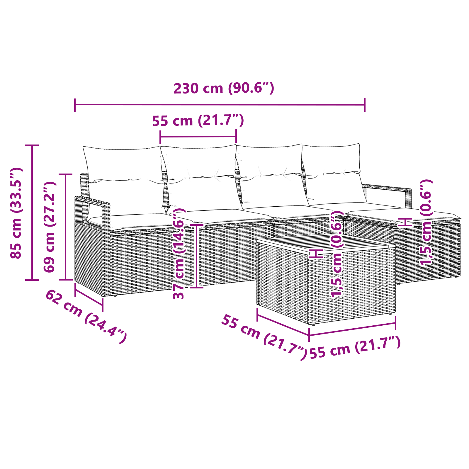 - Seat Depth: 60.00 cm