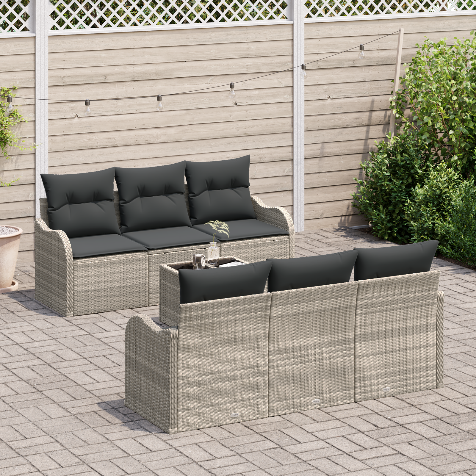Set Canapea Grădină 7 Piese cu Pernițe Gri Deschis Ratan Polimeric GartenMobel Dekor