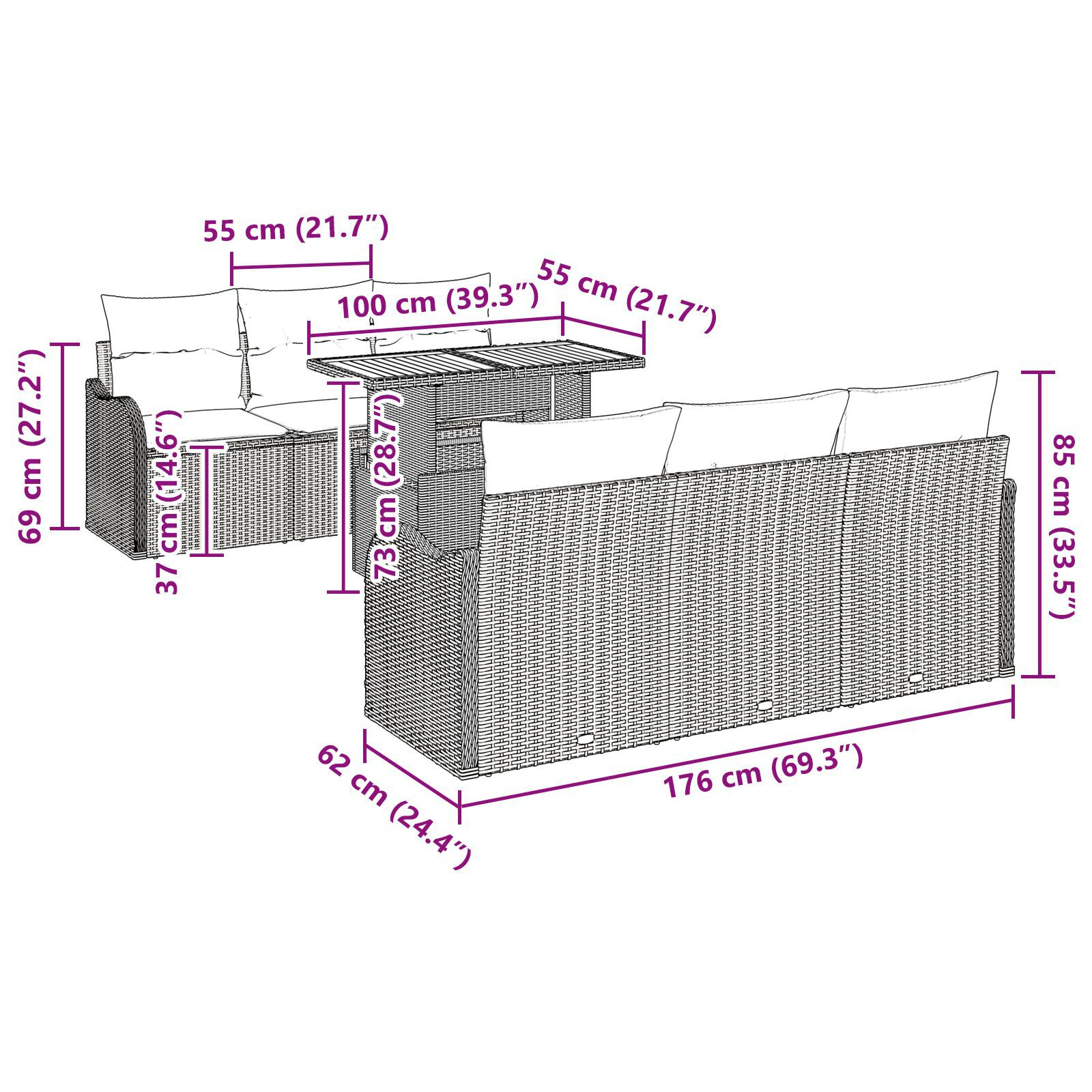Set Canapea Grădină 7 Piese cu Pernițe Negru Ratan Poliester Acacia, Canapea Grădină 2-Seater cu Pernițe Negru Ratan Poliester GartenMobel Dekor