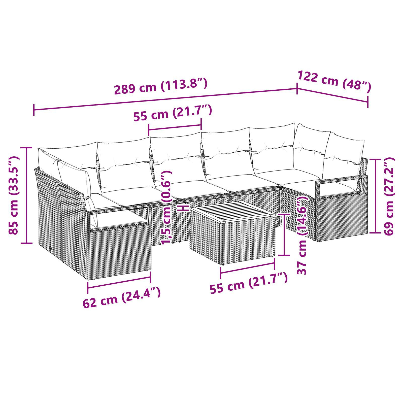 Set Canapea Grădină 8 Piese cu Perne Bej Poliratan Acacia, Set Canapea Grădină 2-Șezuturi cu Perne Bej Poliratan GartenMobel Dekor