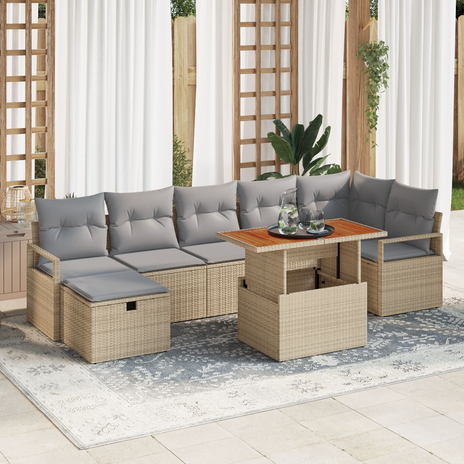 Set Canapea Grădină 8 Piese cu Perne Bej Ratan Poli, Canapea Grădină 2 Locuri cu Perne Bej Ratan Poli GartenMobel Dekor