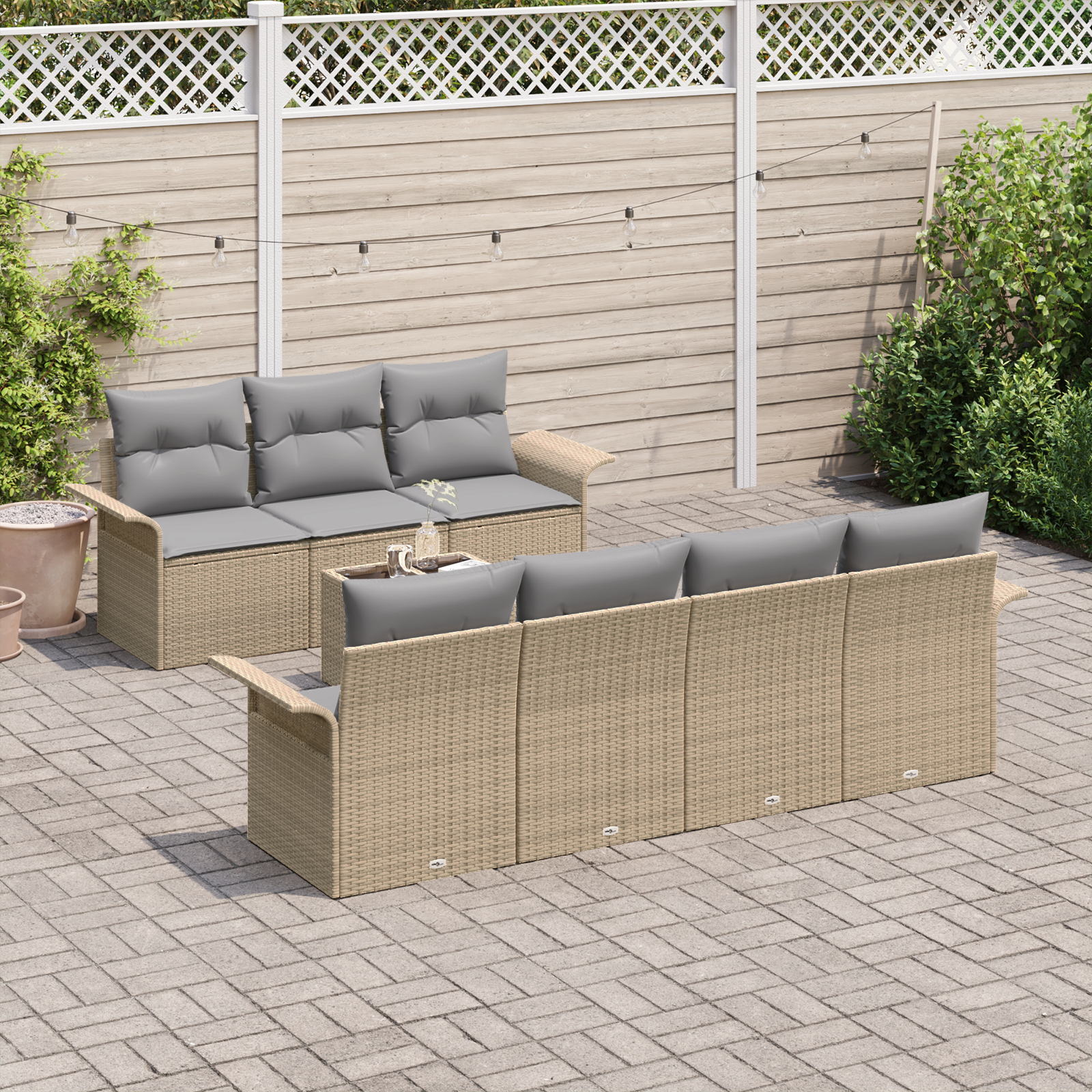 Set canapea grădină 8 piese cu perne Bej Ratan sintetic, Canapea grădină 2 locuri cu depozit și perne Bej Ratan sintetic GartenMobel Dekor