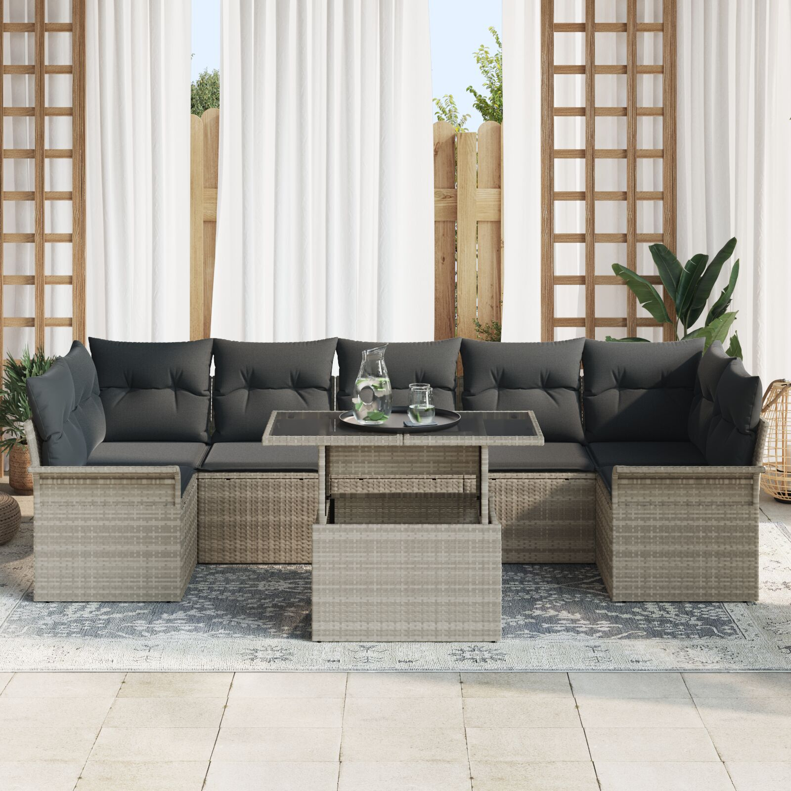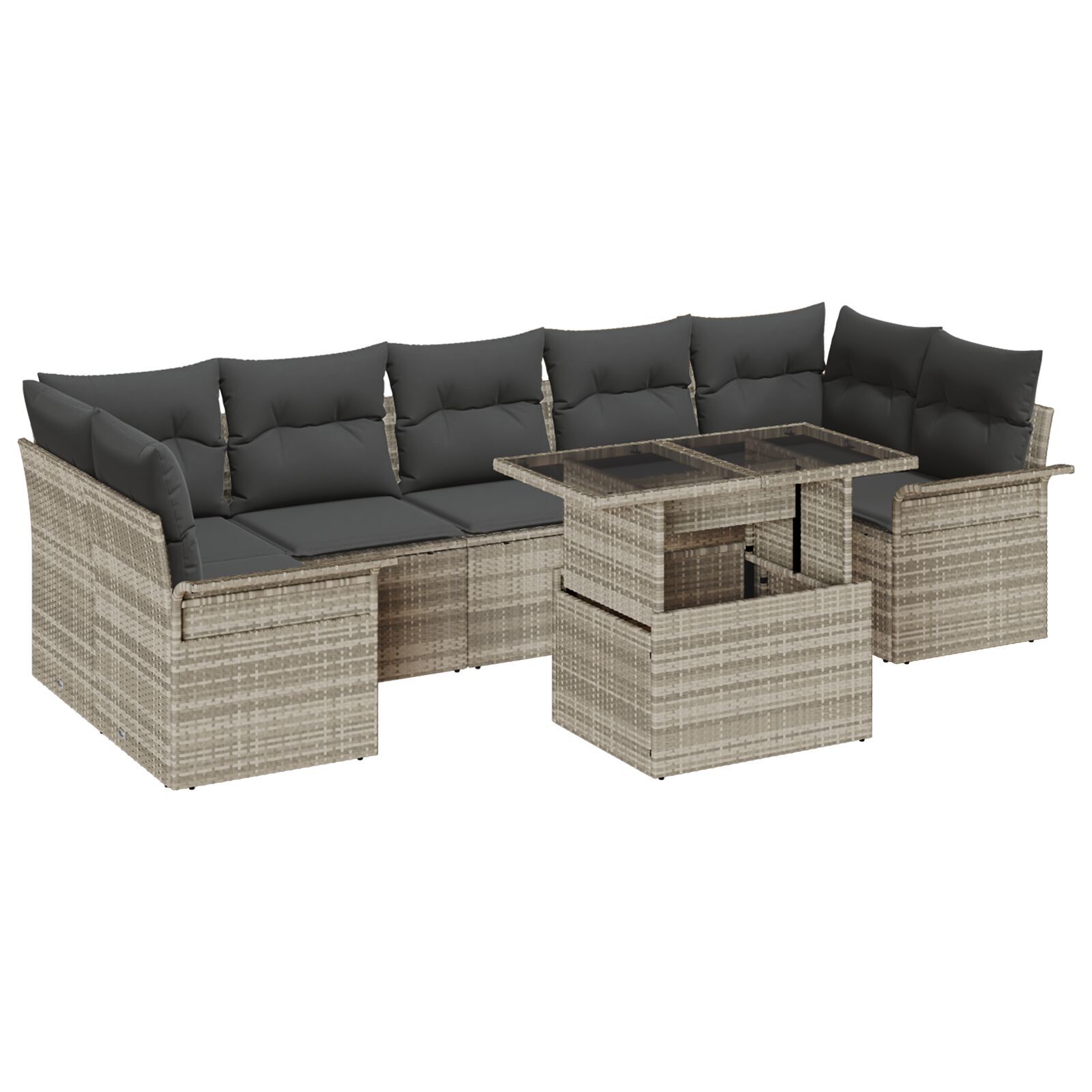 Set canapea grădină 8 piese cu perne gri deschis din poliratan, Canapea grădină 2 locuri cu depozitare și perne gri deschis din poliratan GartenMobel Dekor