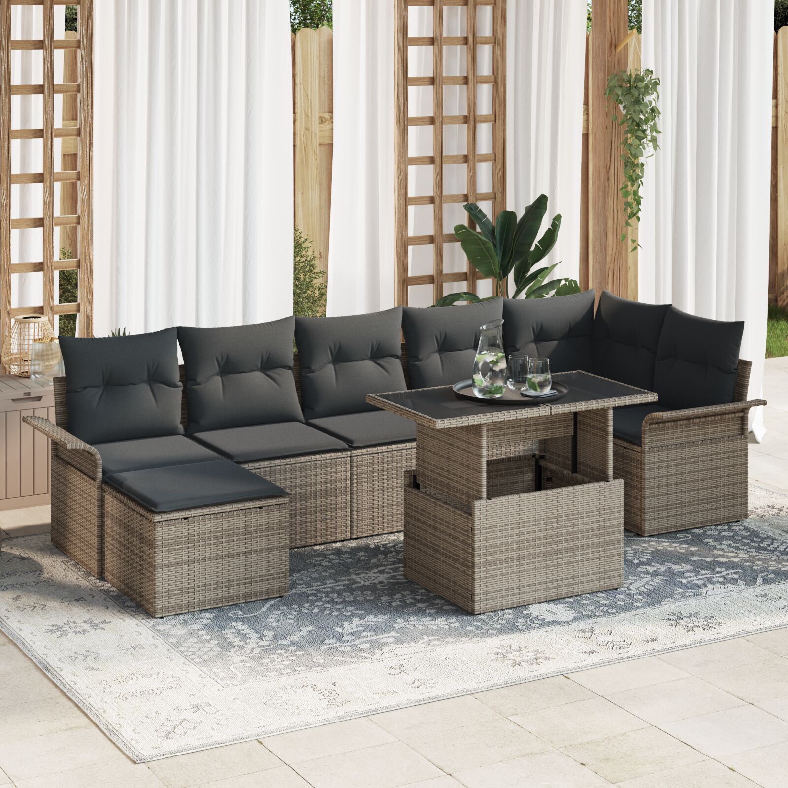 Set canapea grădină 8 piese cu perne gri din ratan poliester GartenMobel Dekor