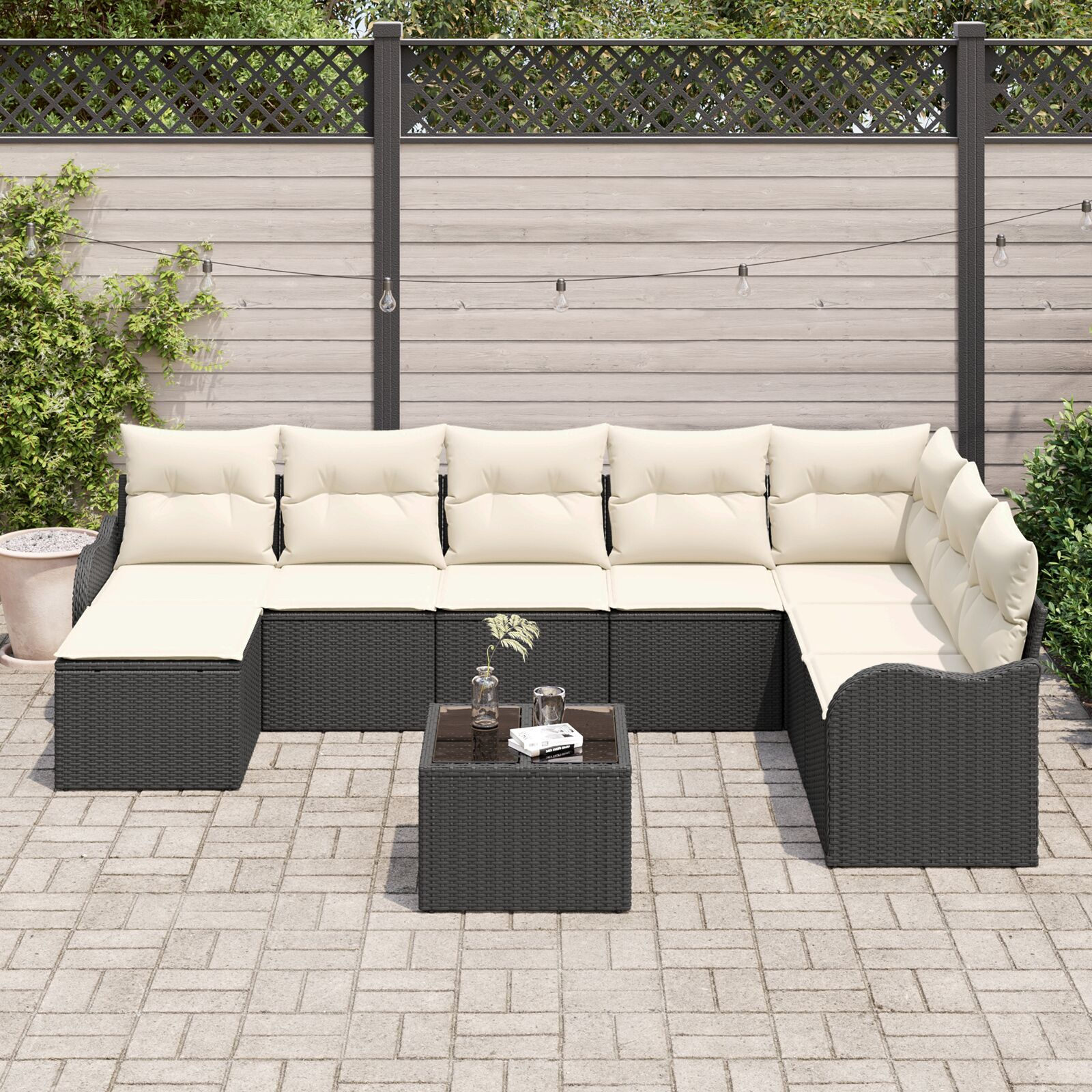 Set canapea grădină 8 piese cu perne poliratan maro, Canapea grădină 2 locuri cu depozitare și perne poliratan negru GartenMobel Dekor