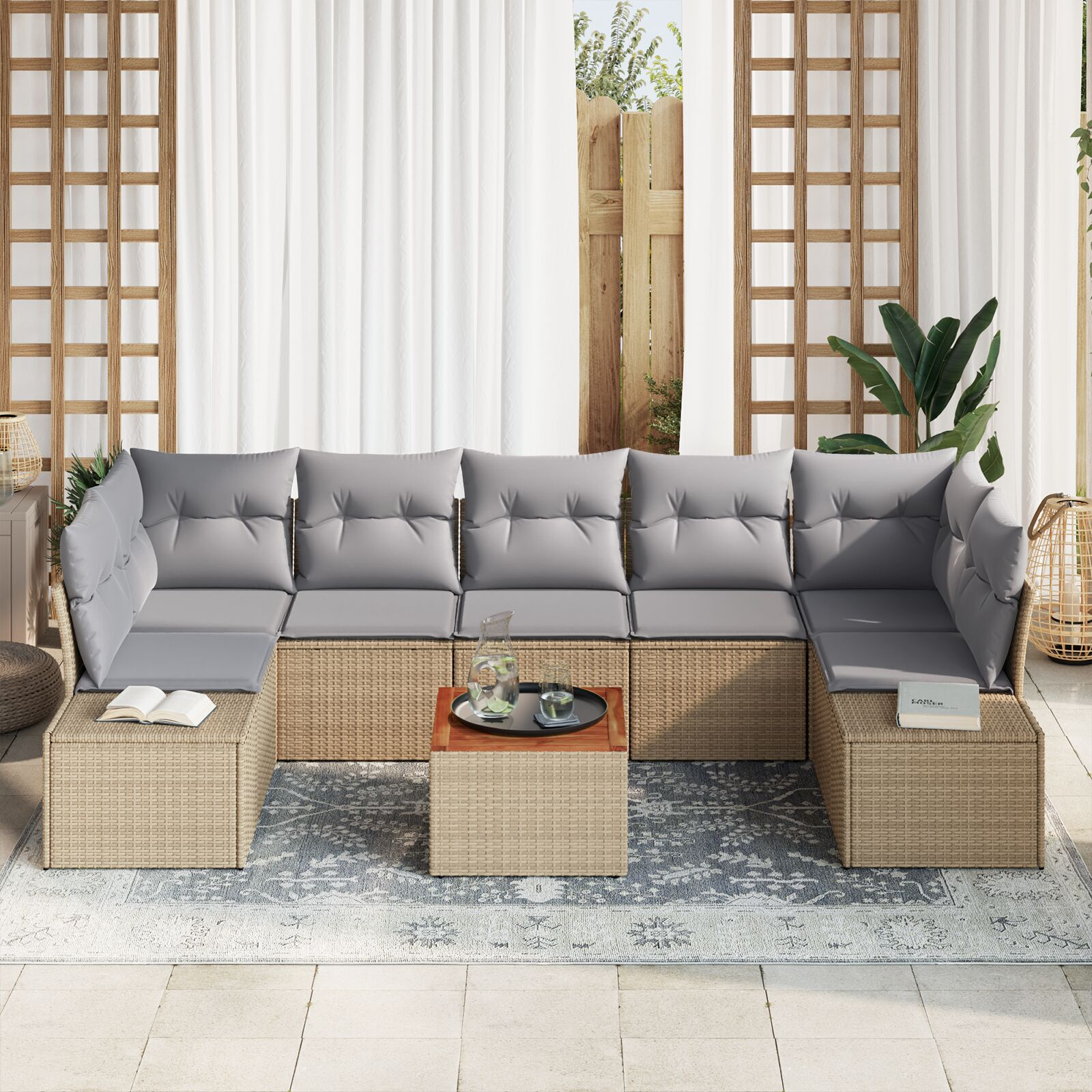 Set canapea grădină 8 piese cu pernuțe Bej Ratan poli Acacia GartenMobel Dekor