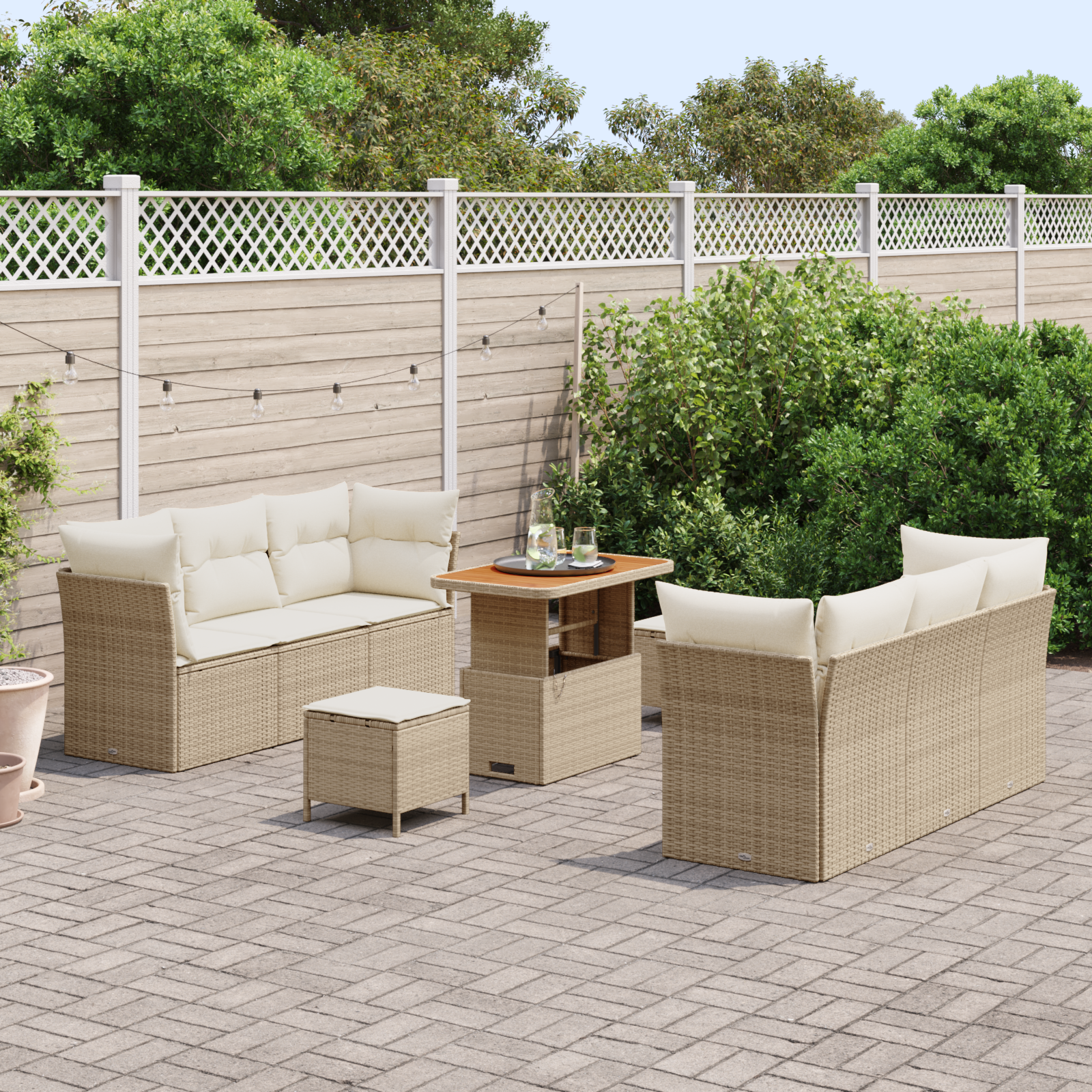 Set canapea grădină 9 piese cu perne Bej Poliratán Acacia GartenMobel Dekor