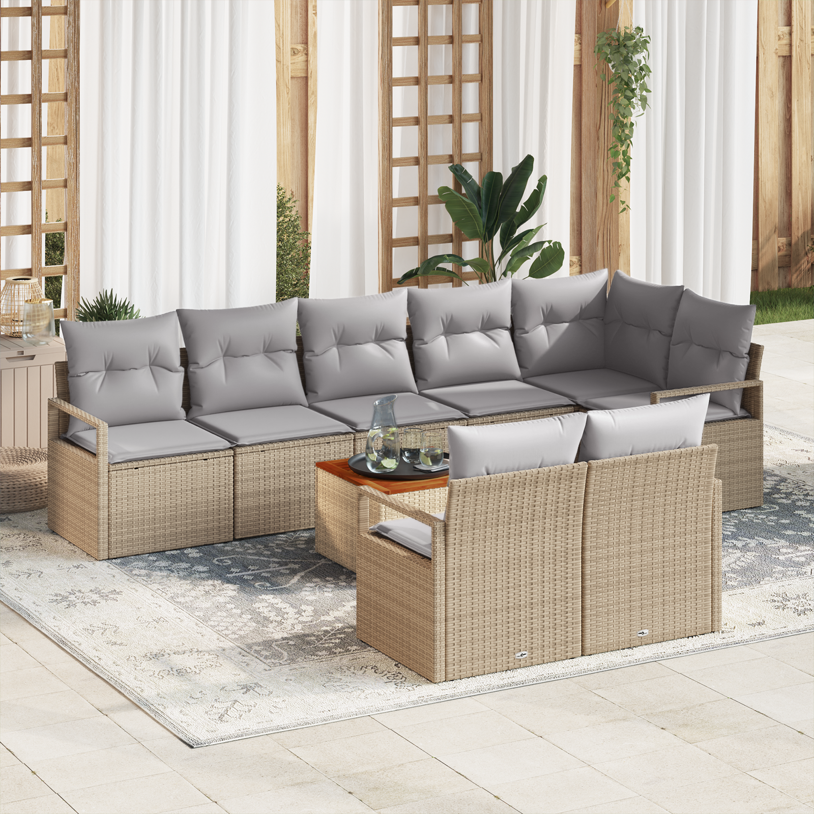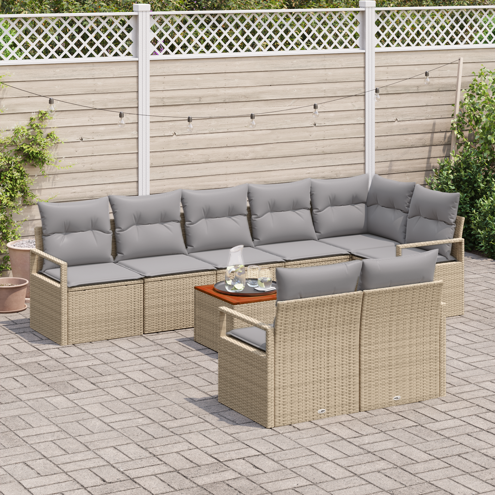 Set canapea grădină 9 Piese cu Perne Bej Ratan Poli Acacia, Canapea grădină pentru 2 persoane cu Perne Bej Ratan Poli GartenMobel Dekor