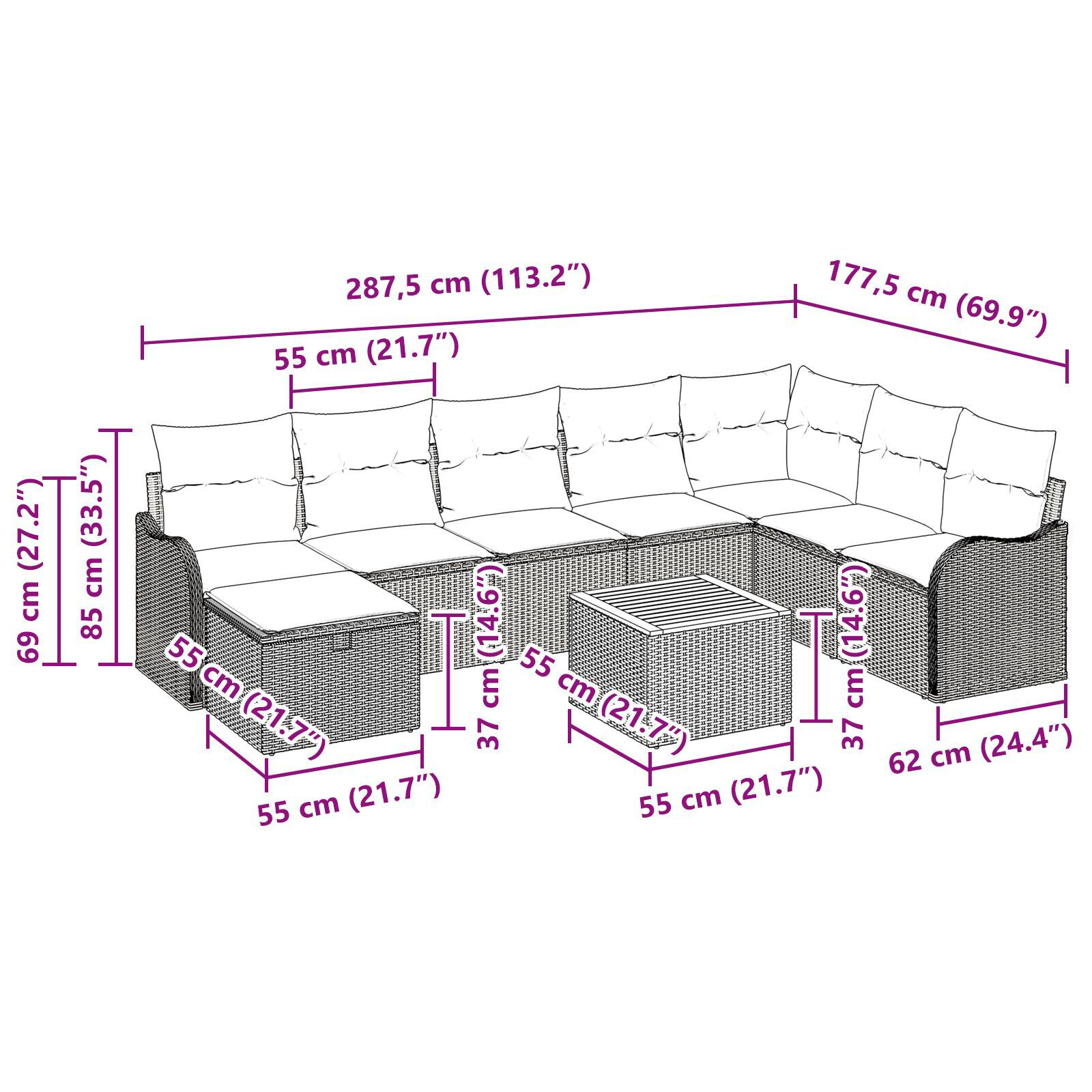 Setul ăsta de canapea grădină 9 piese îți oferă un loc stylish și confortabil pentru spațiile exterioare. Designul modular îmbunătățește funcționalitatea și aspectul, fiind perfect pentru întâlniri sociale sau pentru relaxare în zilele însorite.