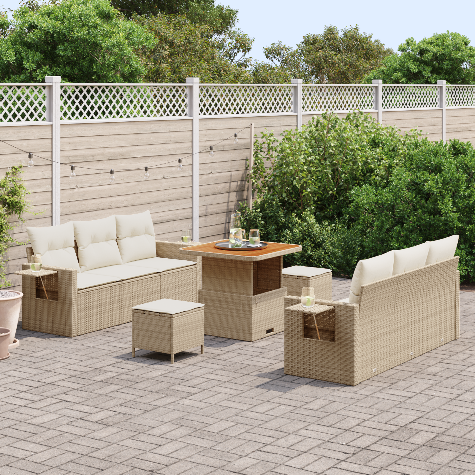 Set canapea grădină 9 piese cu perne Bej Ratan Poliester Acacia, Set dining grădină 3 piese cu perne Bej Ratan Poliester Acacia GartenMobel Dekor