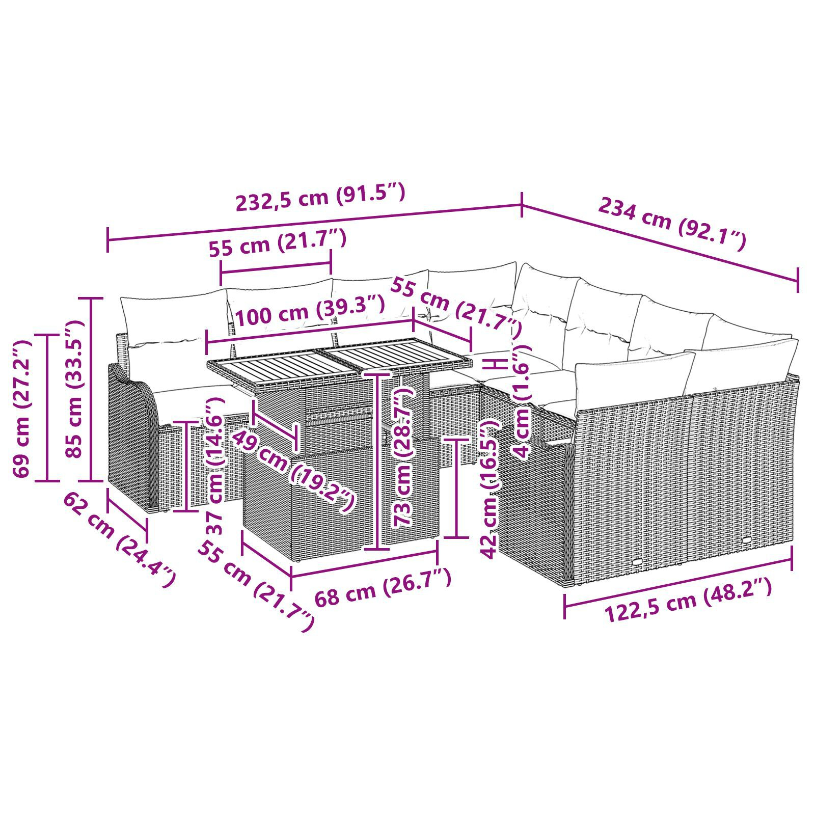 Setul ăsta de 9 Piese pentru Grădină e combinația perfectă de stil și utilitate, esențial pentru orice zonă exterioară. Cu un design modern, pernele confortabile și aranjamentele flexibile îl fac ideal atât pentru relaxare cât și pentru socializarea cu prietenii.