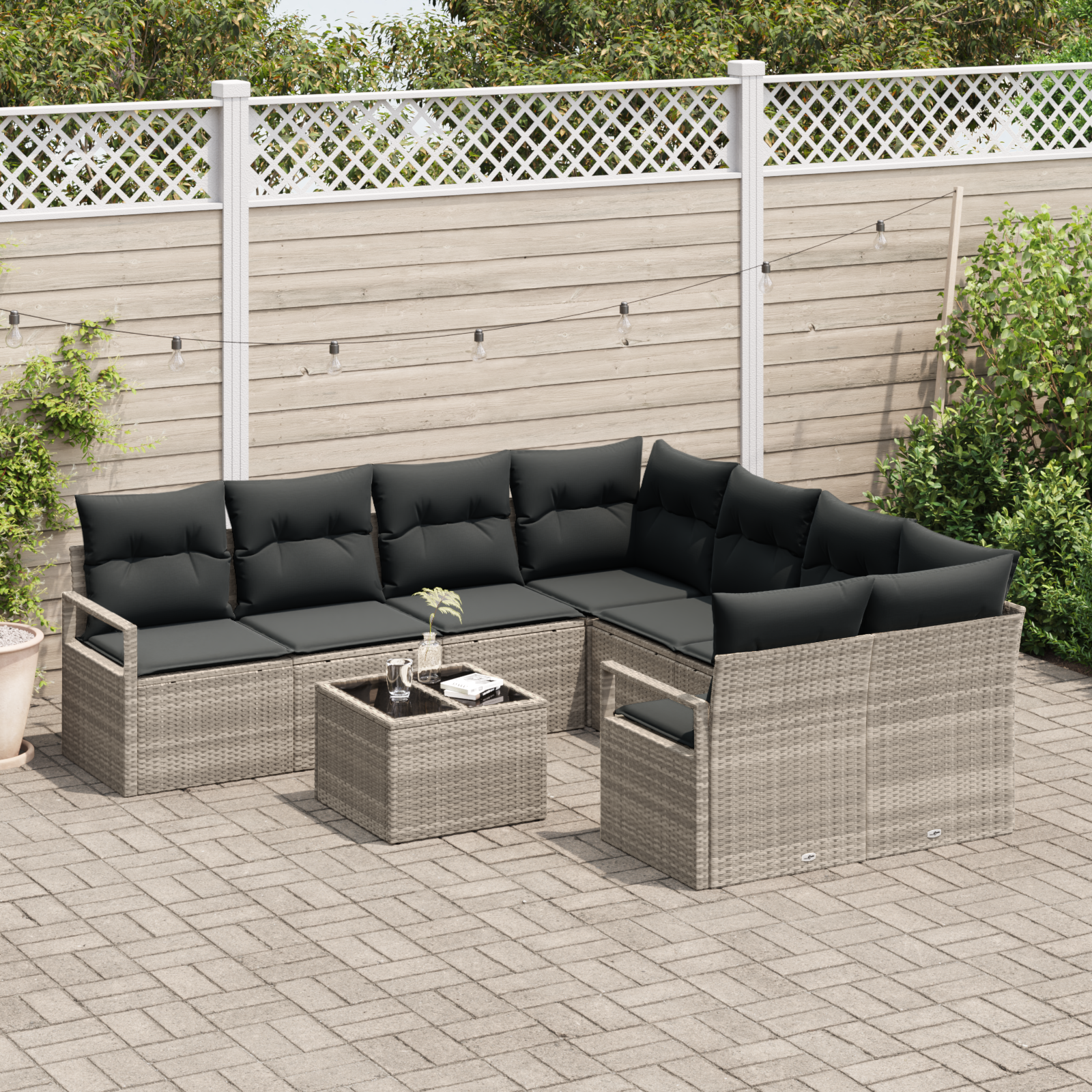 Set Canapea Grădină 9 Piese cu Perne Gri Deschis din Ratan PE, Canapea Grădină 2 Piese cu Perne Gri din Ratan PE GartenMobel Dekor