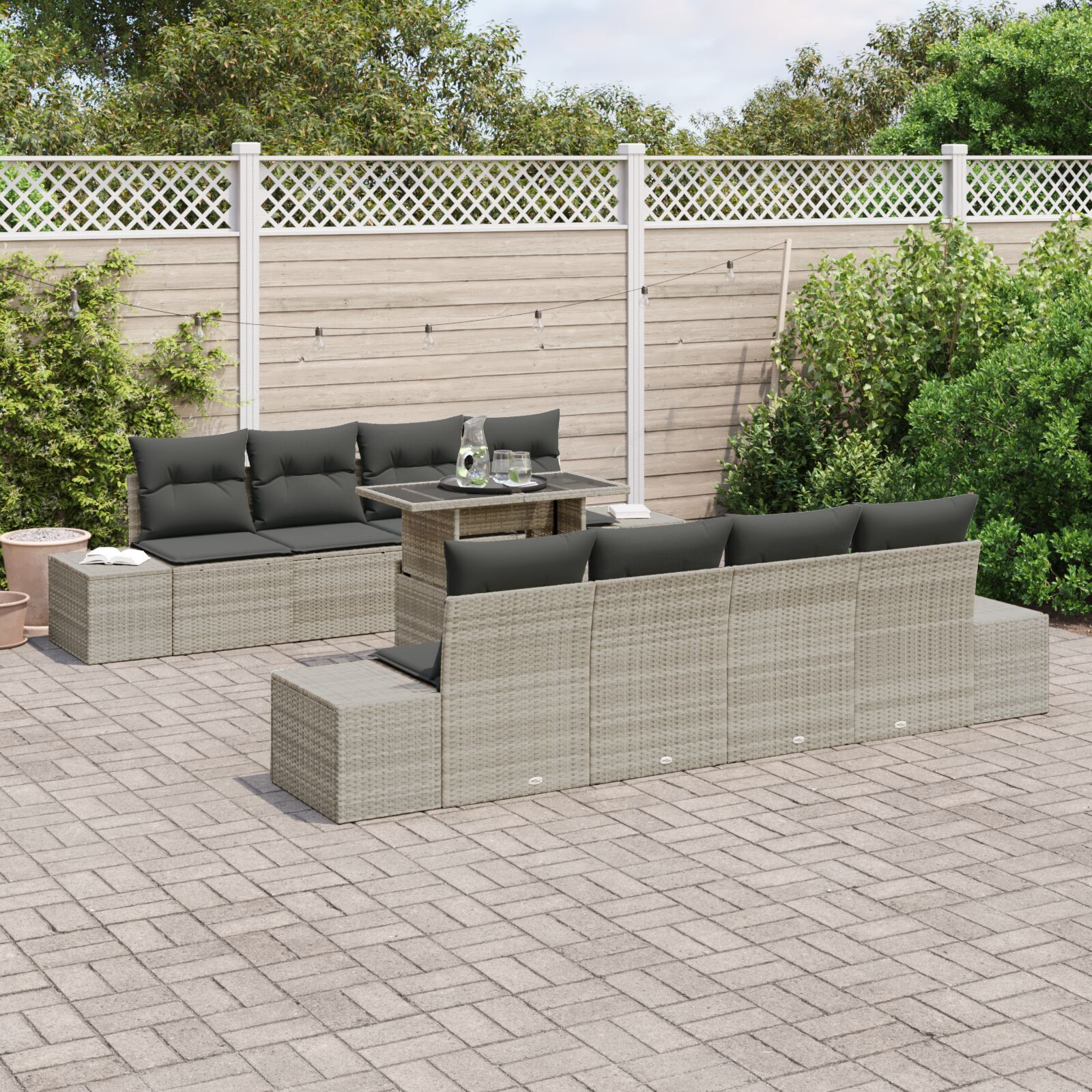 Set canapea grădină 9 Piese cu perne Gri deschis Ratan polimeric GartenMobel Dekor