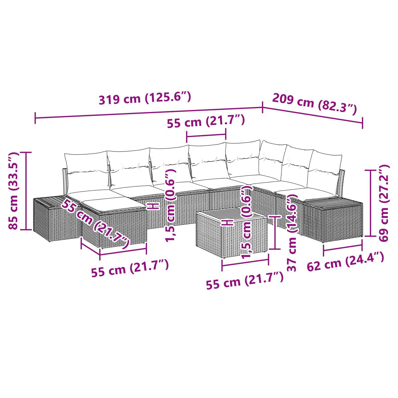 Set canapea grădină 9 piese cu perne Gri Poliratan Acacia GartenMobel Dekor