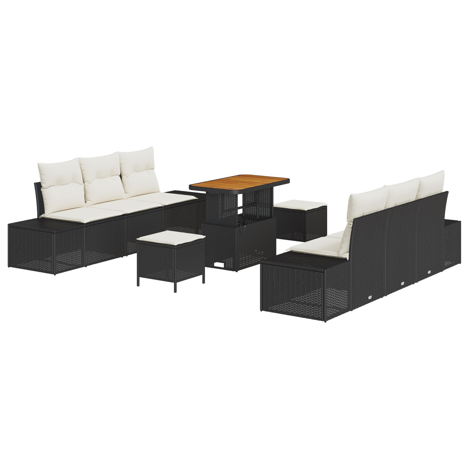 Setul ăsta de canapea pentru grădină cu 9 piese e o opțiune stylish și confortabilă, perfectă pentru întâlniri în aer liber sau pur și simplu pentru relaxare. Împletitura neagră din poliratan cu perne crem face orice patio sau grădină să arate bine, deci e o alegere super pentru oricine caută ceva confortabil și stylish în zona exterioară.