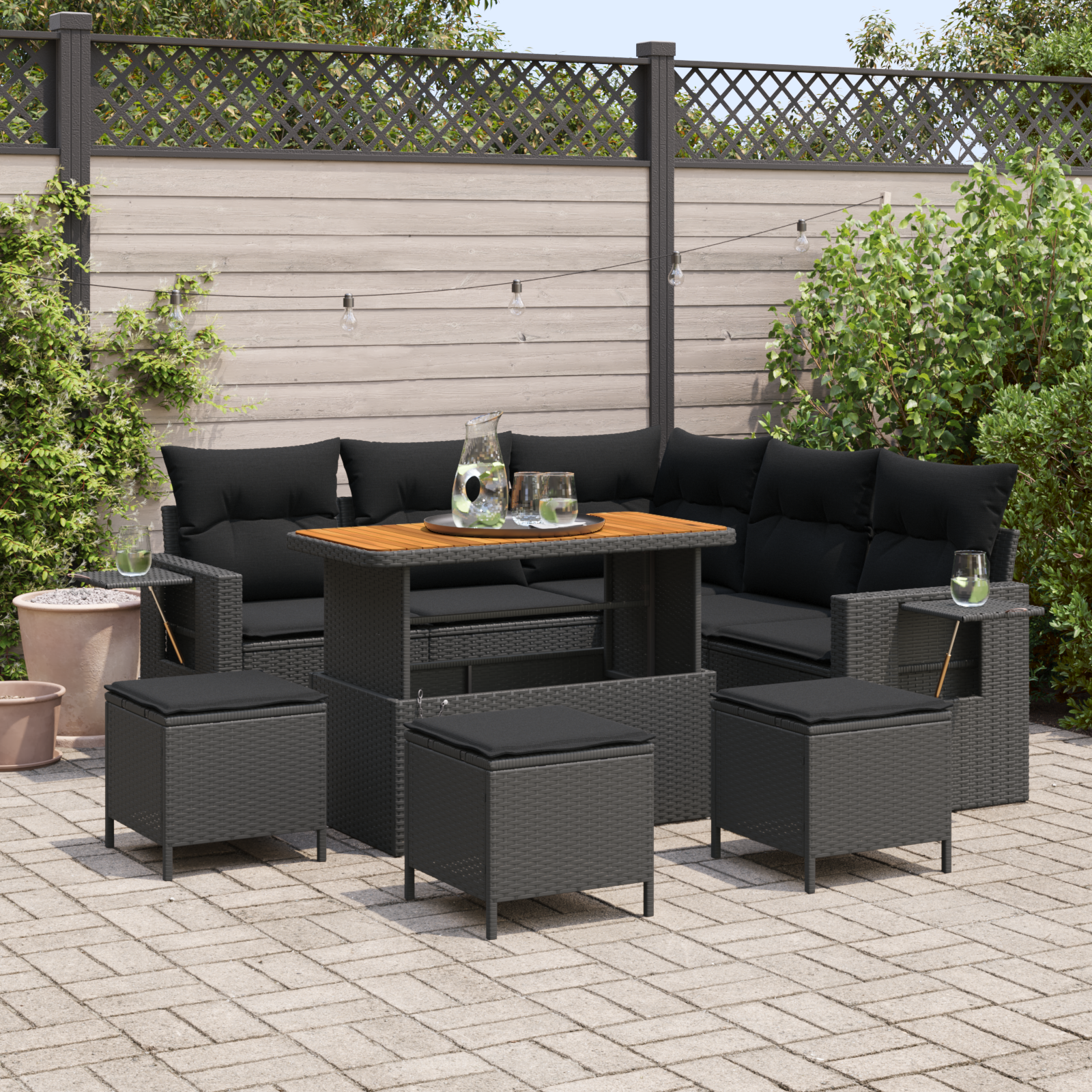 Set Canapea Grădină 9 Piese cu Perne - Poli Ratan Negru Acacia, Set Dining Grădină 4 Piese cu Perne - Poli Ratan Negru Acacia GartenMobel Dekor
