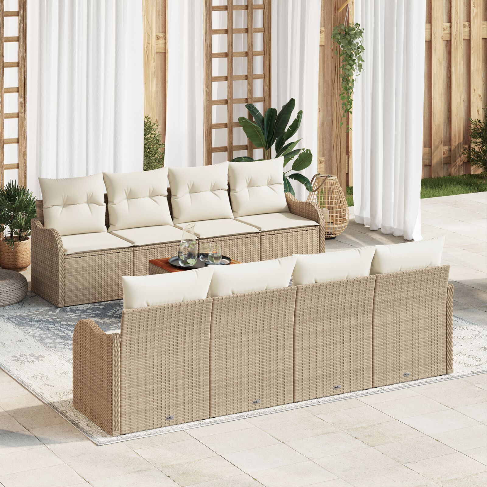Set canapea grădină 9 Piese cu Pernuțe Bej Poliratan Acacia, Canapea grădină 2 Locuri cu Pernuțe Bej Poliratan GartenMobel Dekor